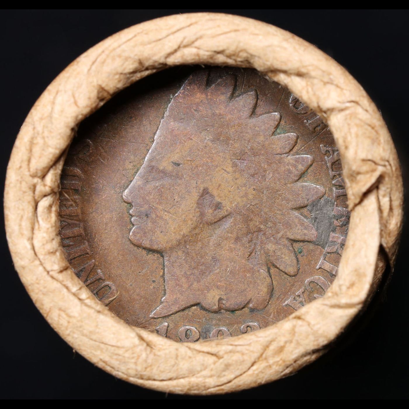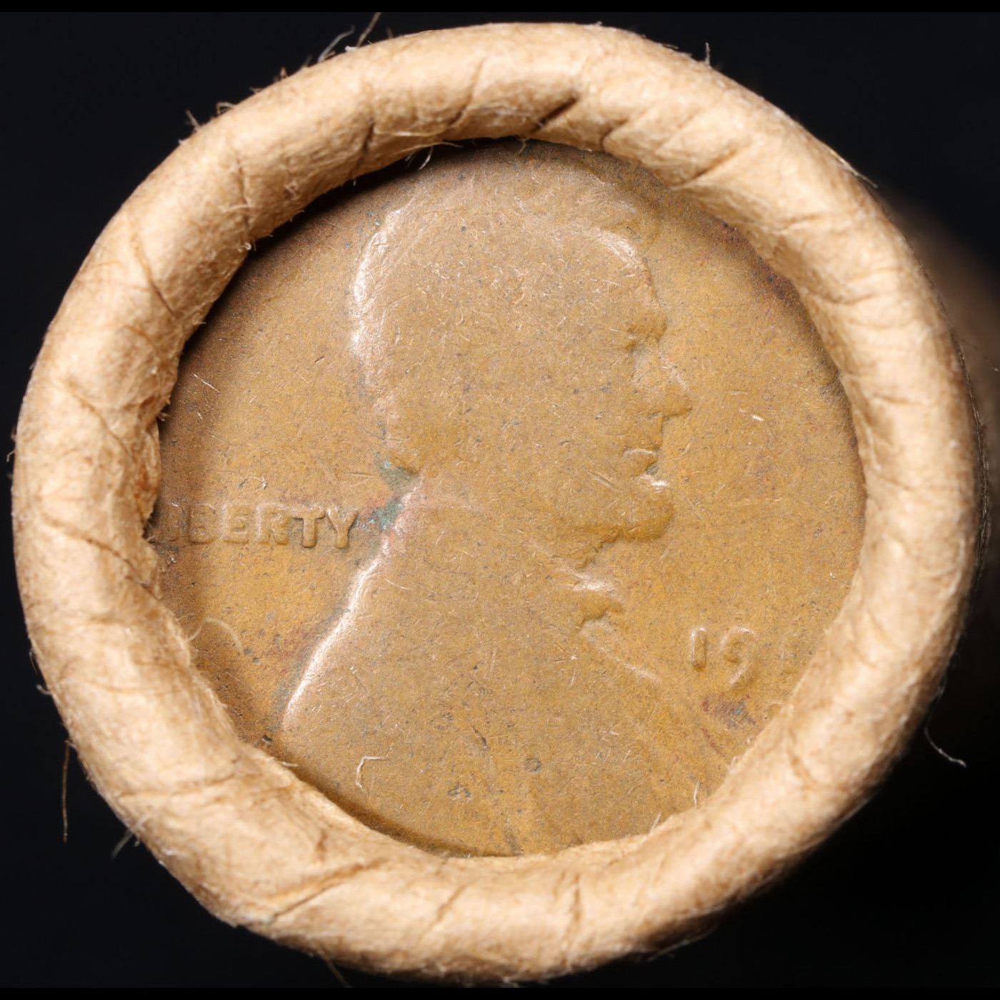 Mixed small cents 1c orig shotgun roll, 1918-d Wheat Cent, 1893 Indian Cent other end, Brinks Wrappe