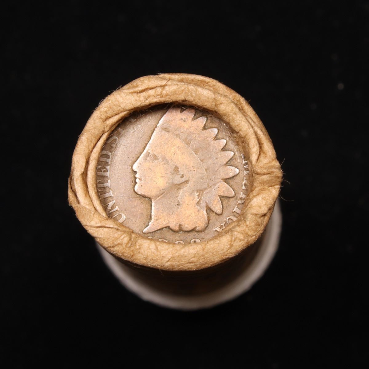 Mixed small cents 1c orig shotgun roll, 1918-d Wheat Cent, 1893 Indian Cent other end,McDnalds Wrapp
