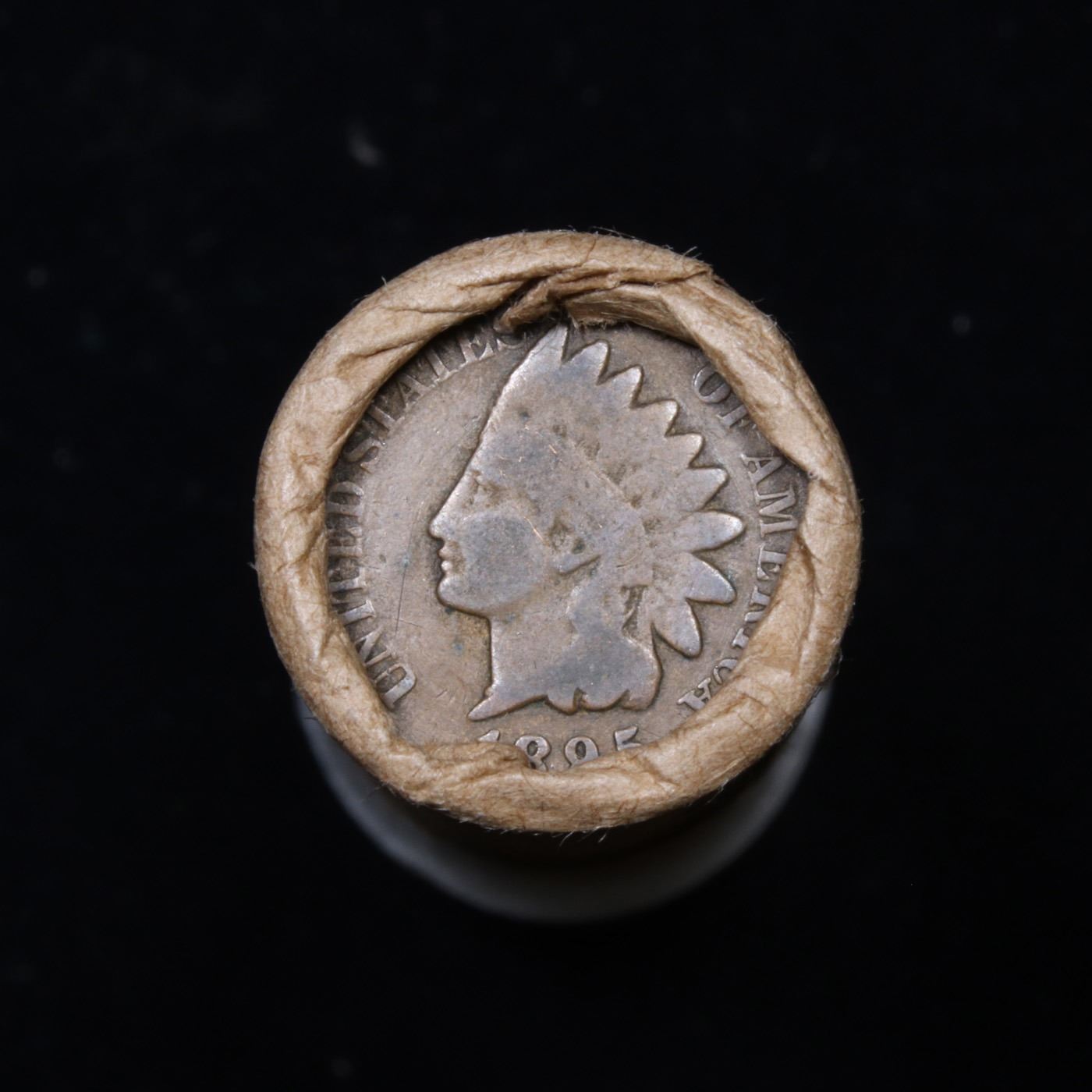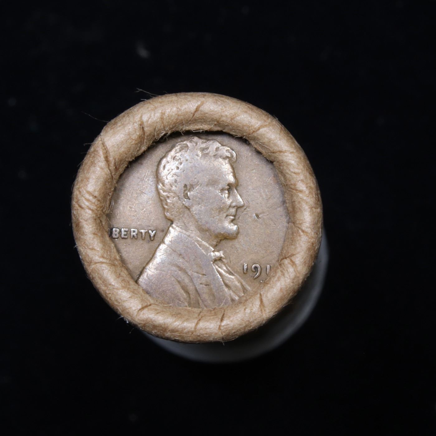 Mixed small cents 1c orig shotgun roll, 1918-d Wheat Cent, 1895 Indian Cent other end, McDnalds Wrap