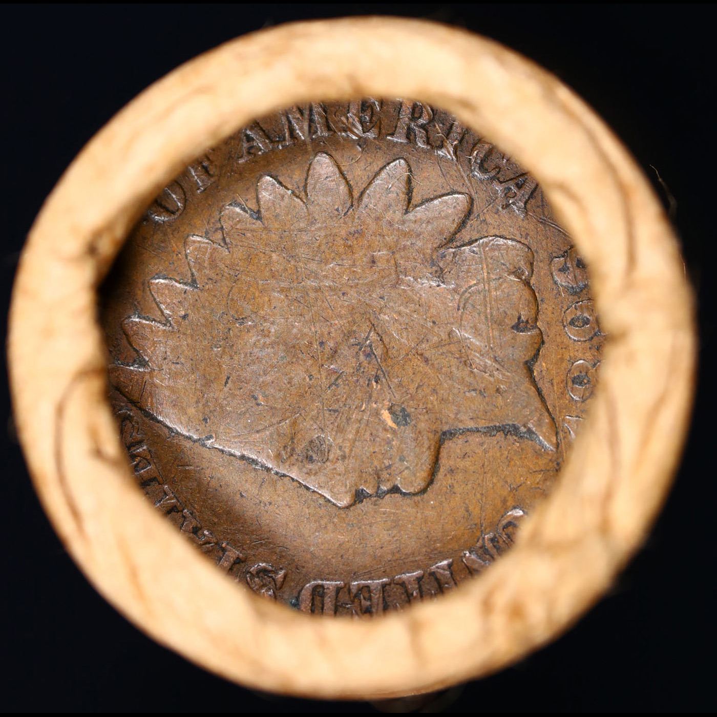 Mixed small cents 1c orig shotgun roll, 1918-d Wheat Cent, 1896 Indian Cent other end, brinks Wrappe