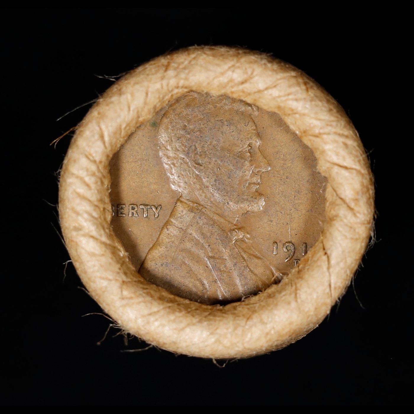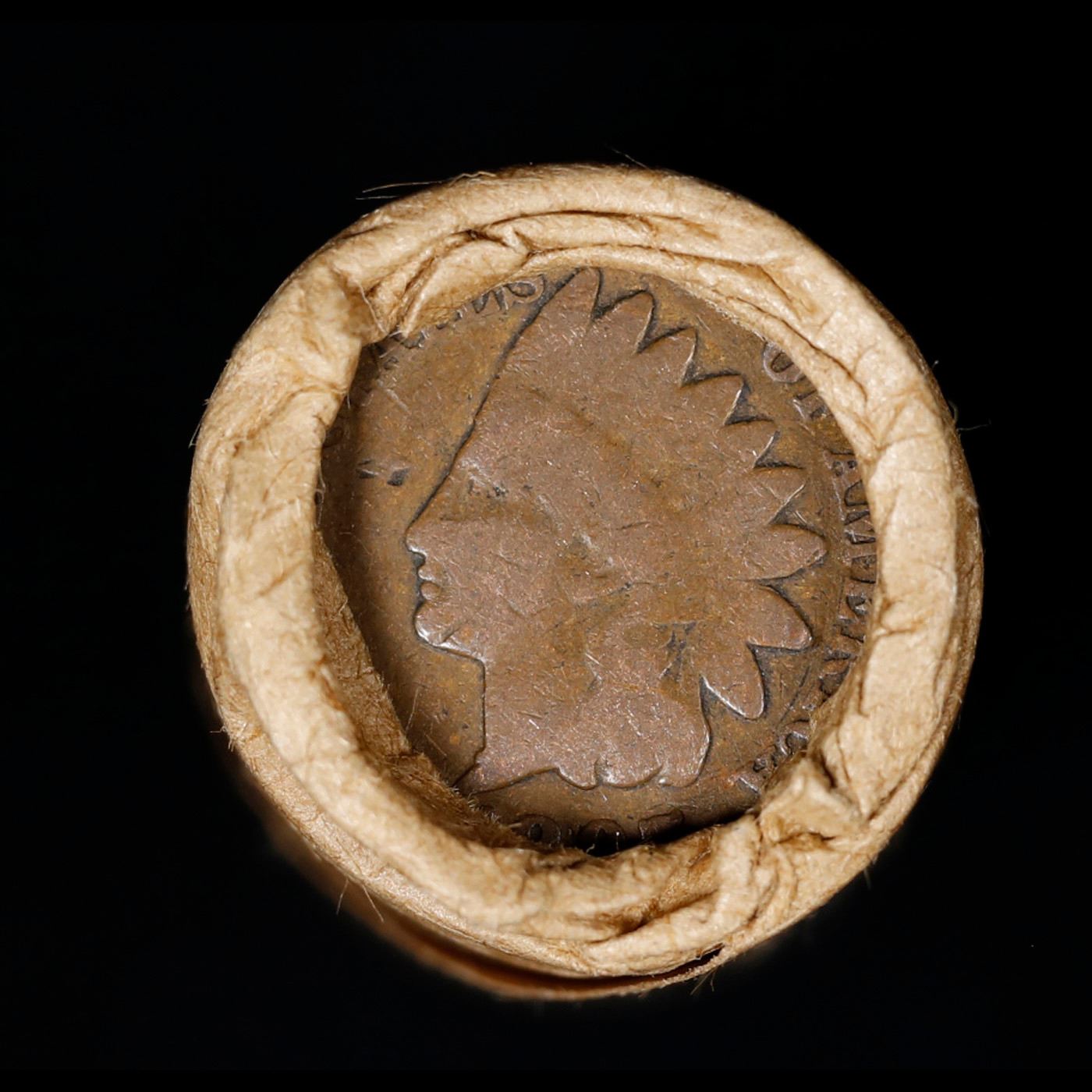 Mixed small cents 1c orig shotgun roll, 1918-d Wheat Cent, 1897 Indian Cent other end, Brinks Wrappe