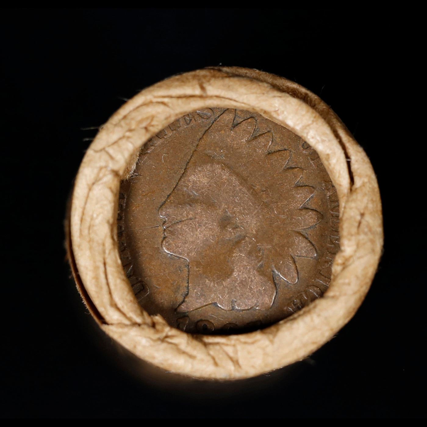 Mixed small cents 1c orig shotgun roll, 1918-d Wheat Cent, 1897 Indian Cent other end, Brinks Wrappe