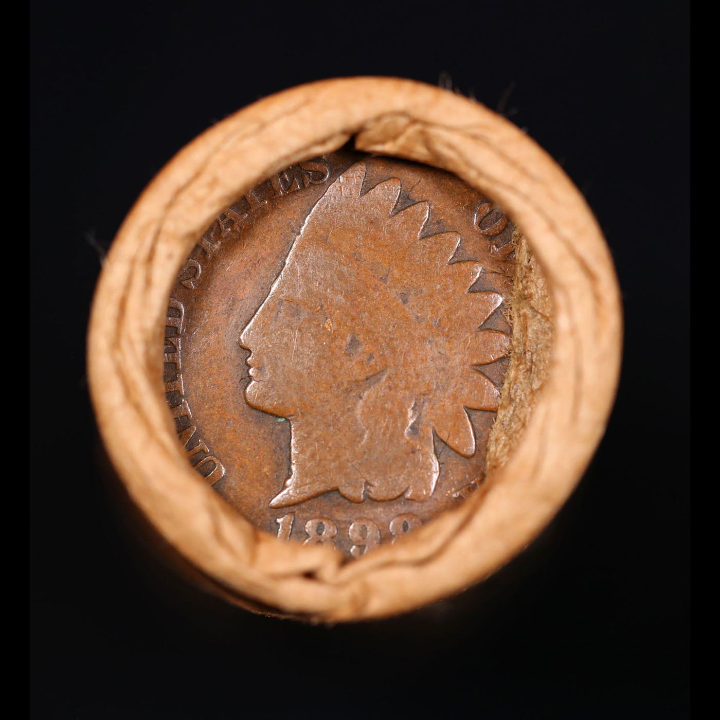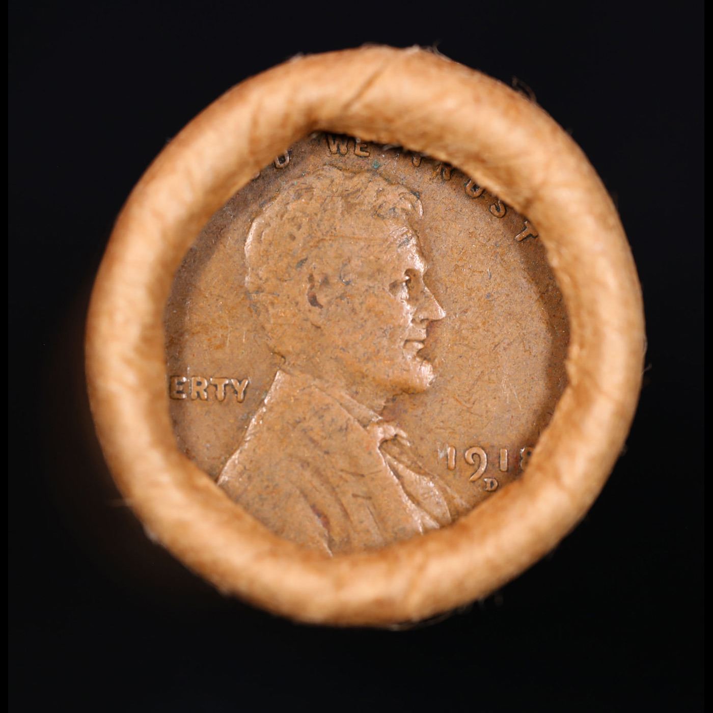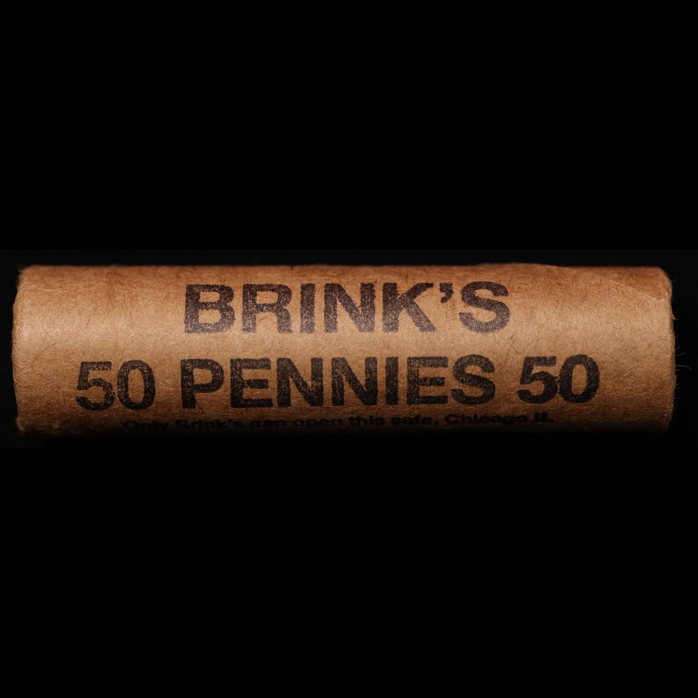 Mixed small cents 1c orig shotgun roll, 1918-d Wheat Cent, 1898 Indian Cent other end, Brinks Wrappe