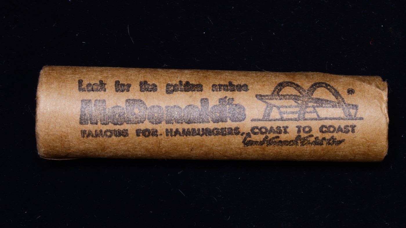 Mixed small cents 1c orig shotgun roll, 1918-d Wheat Cent, 1899 Indian Cent other end, McDonalds Wrapper. The roll is held in an old Rare & Collectable McDonalds Brandt wrapper. Look For The Golden Arches. Actual roll pictured is the roll you will get. A great original bank shotgun roll with very tight ends. We have opened a few of these rolls. They seem to be mixed small cents including Indians, Wheats, Steel cents & some Flying Eagles mixed in. These shotgun rolls are all from a new consignee. They are all frrom one Estate.