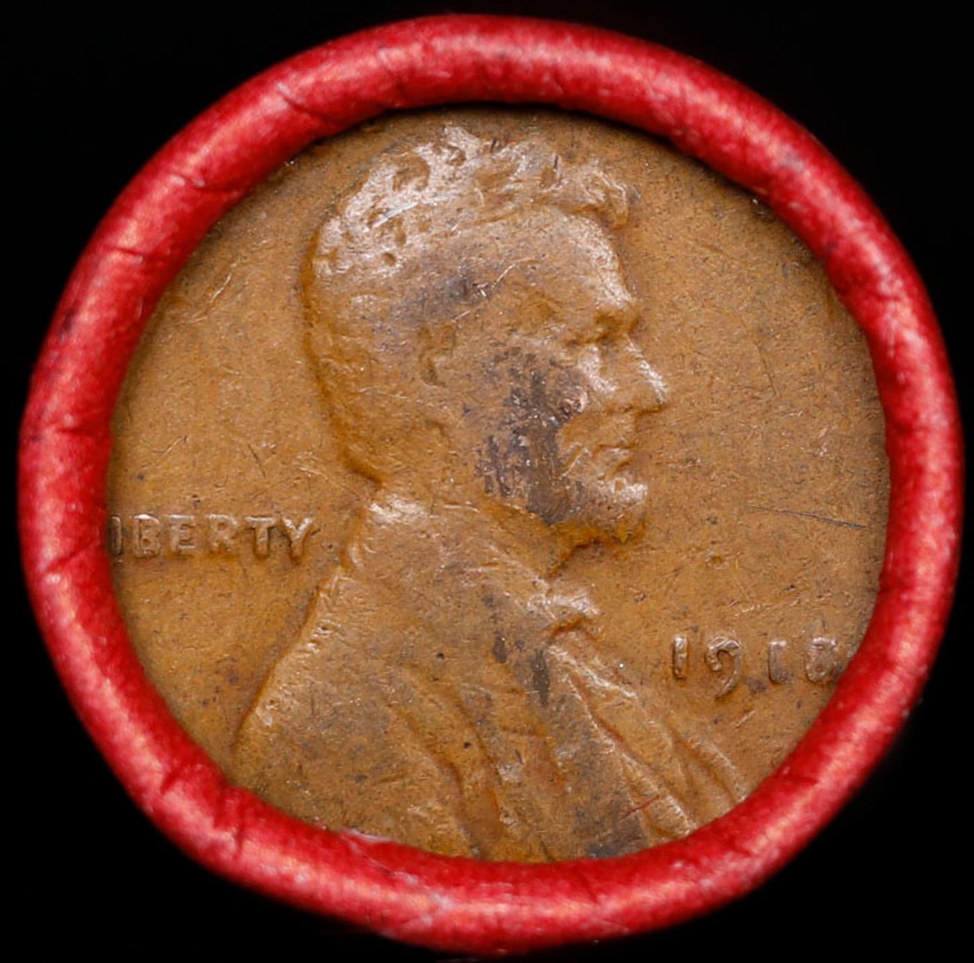 Mixed small cents 1c orig shotgun roll, 1918-p Lincoln Cent, 1930-p Lincoln Cent other end, Coca-Col