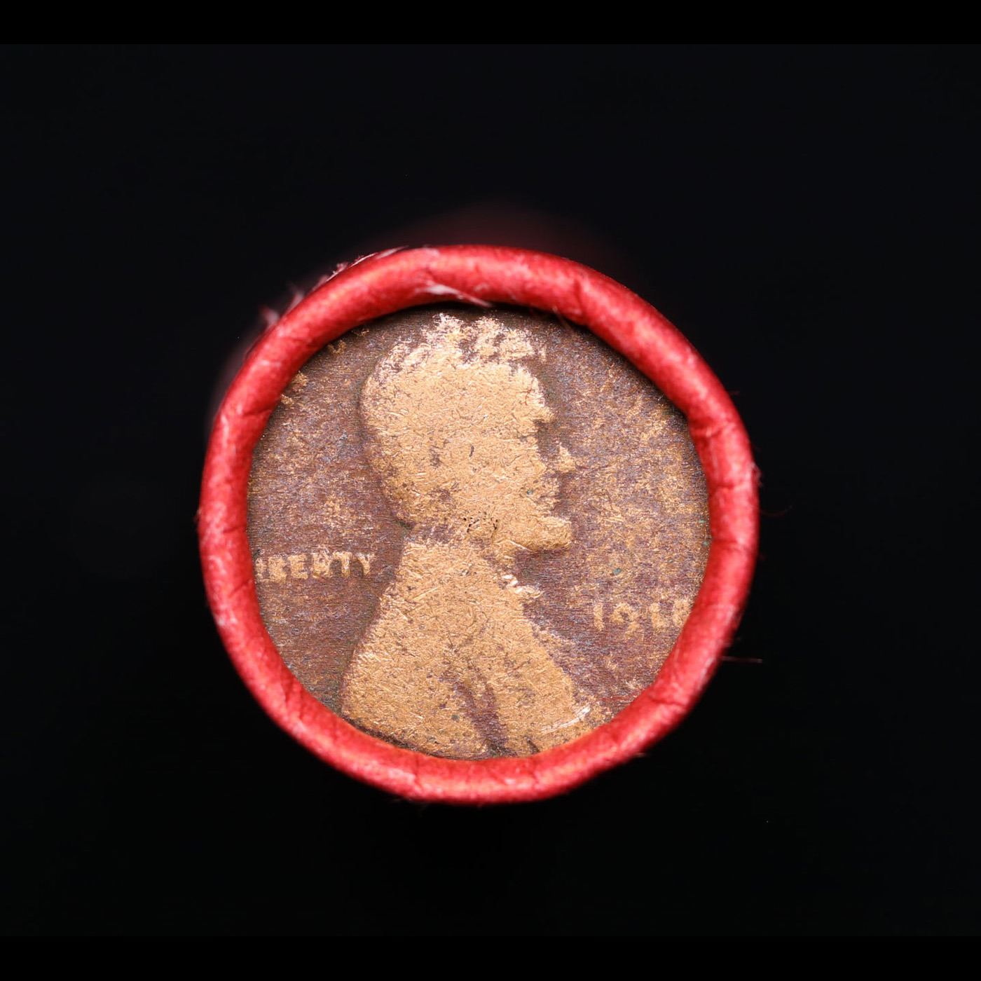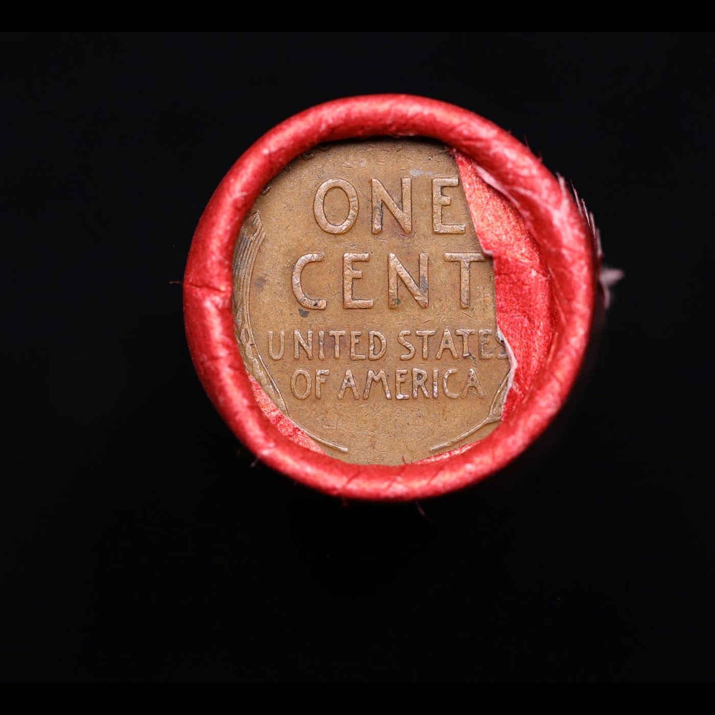 Mixed small cents 1c orig shotgun roll, 1918-p Lincoln Cent, Wheat Cent other end, Nathan's Brandt W