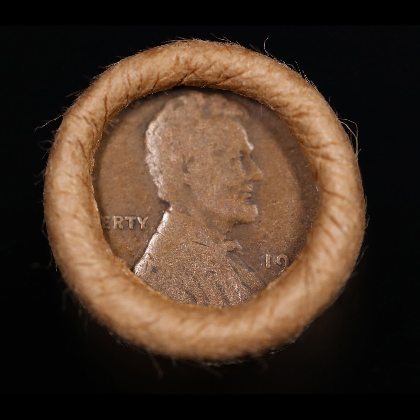 Mixed small cents 1c orig shotgun roll, 1918-s Wheat Cent, 1887 Indian Cent other end, Brinks Wrappe