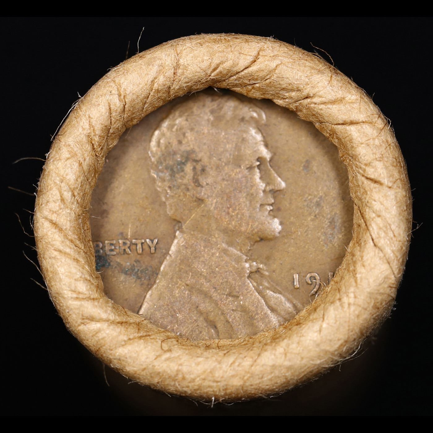 Mixed small cents 1c orig shotgun roll, 1918-s Wheat Cent, 1889 Indian Cent other end, Brinks Wrappe