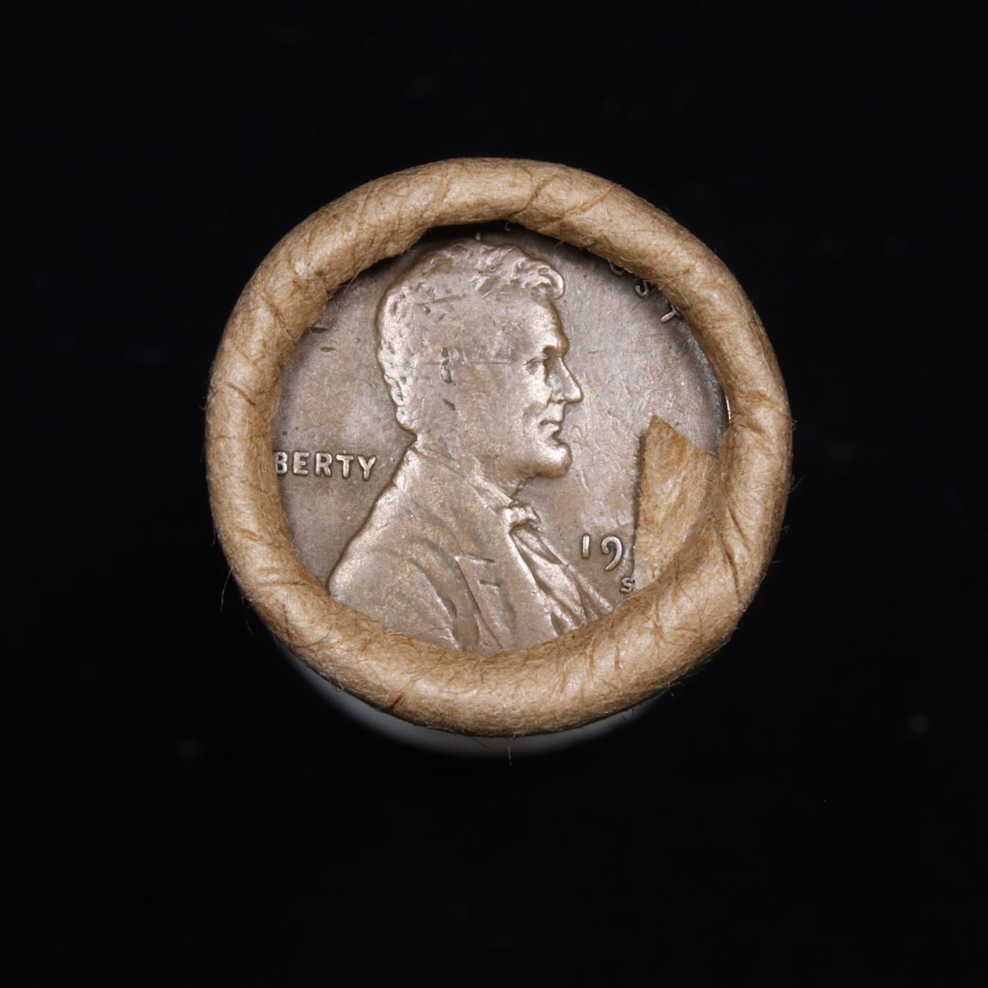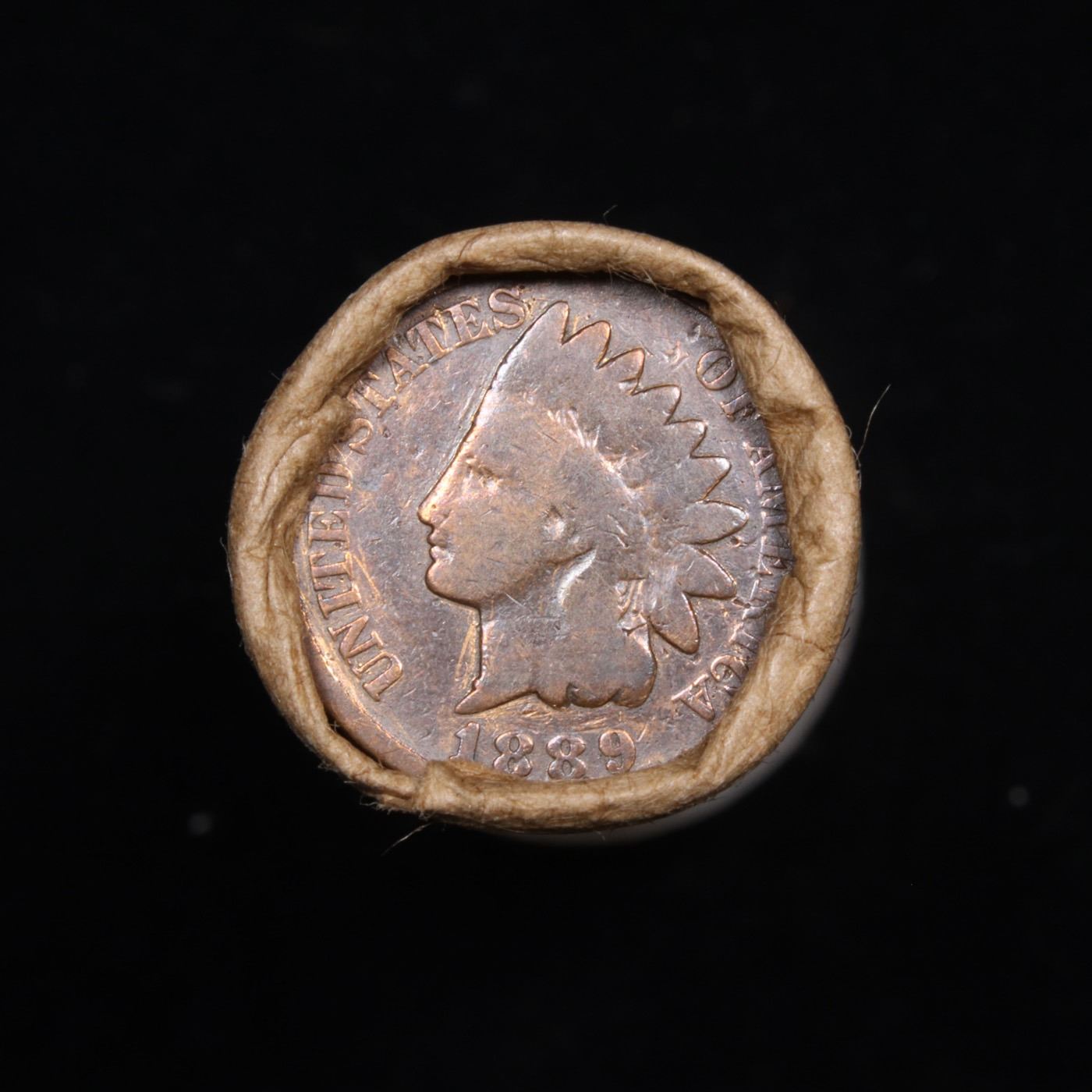 Mixed small cents 1c orig shotgun roll, 1918-s Wheat Cent, 1889 Indian Cent other end, McDonalds Wra
