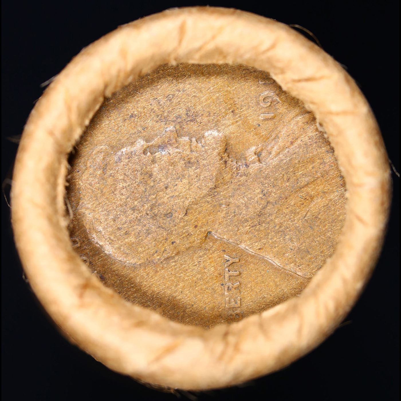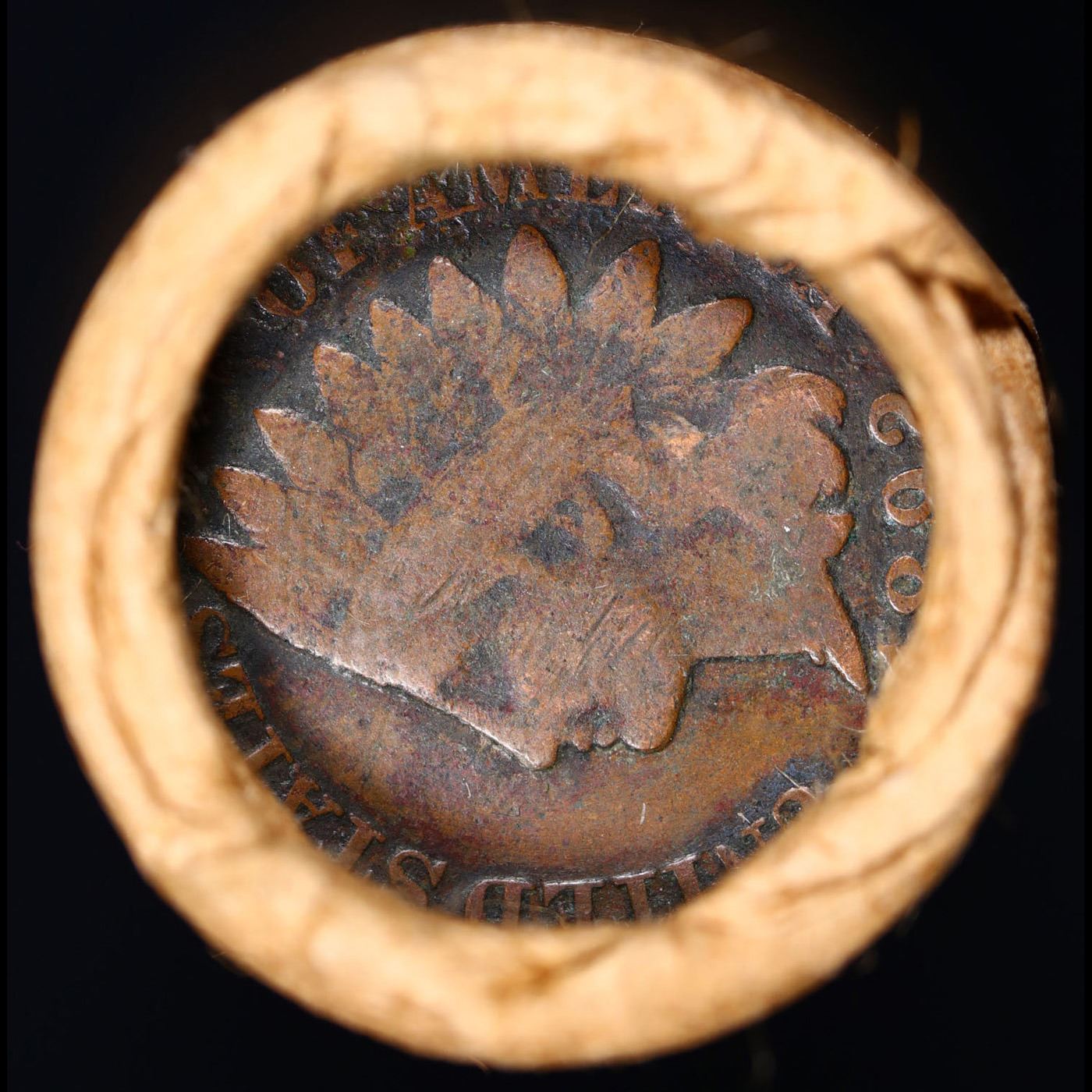 Mixed small cents 1c orig shotgun roll, 1918-s Wheat Cent, 1892 Indian Cent other end, brinks Wrappe