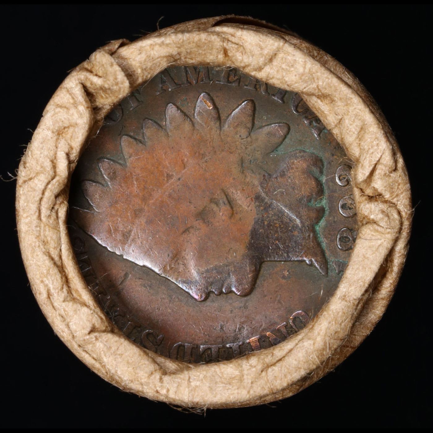 Mixed small cents 1c orig shotgun roll, 1918-s Wheat Cent, 1892 Indian Cent other end, brinks Wrappe