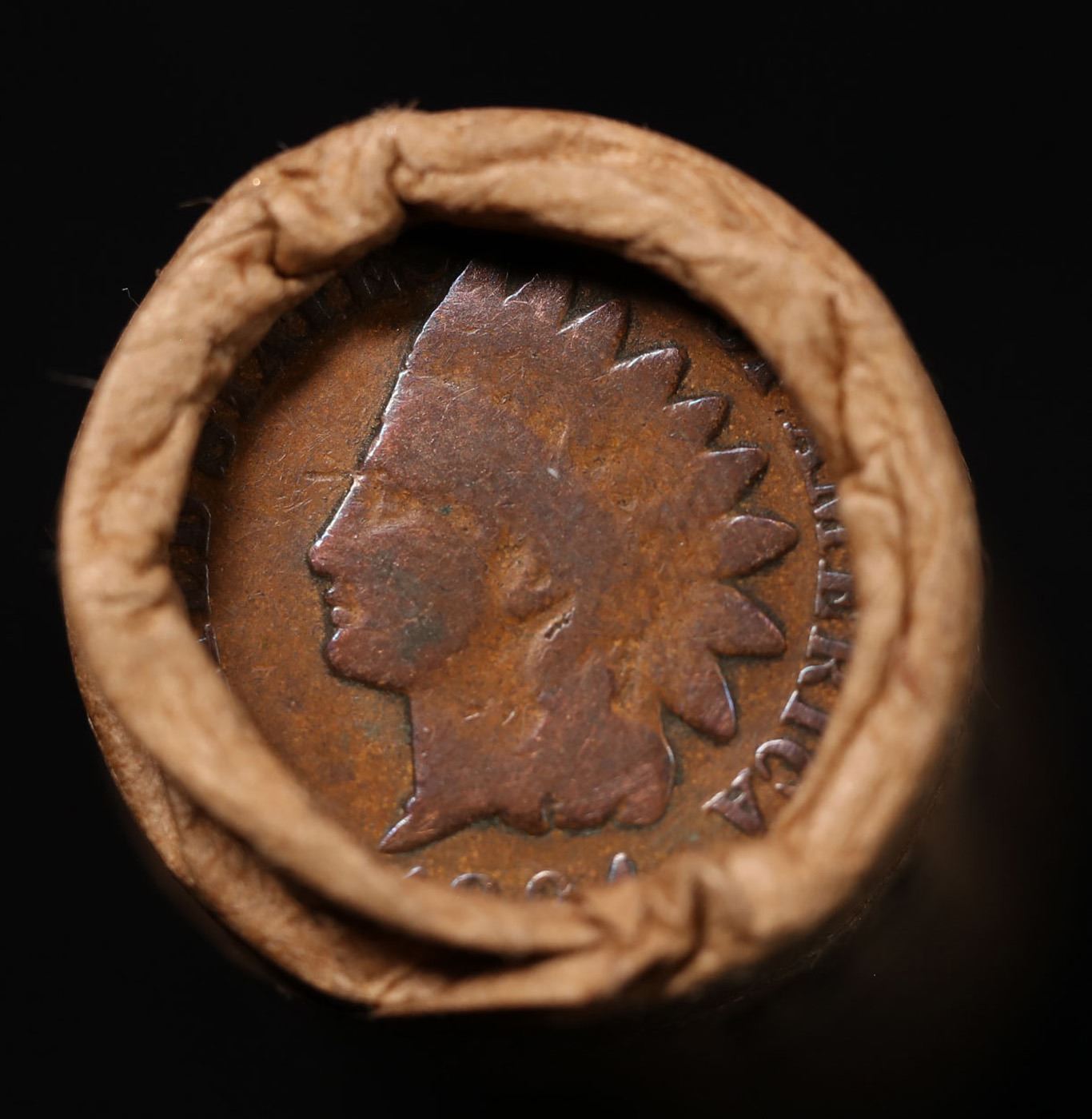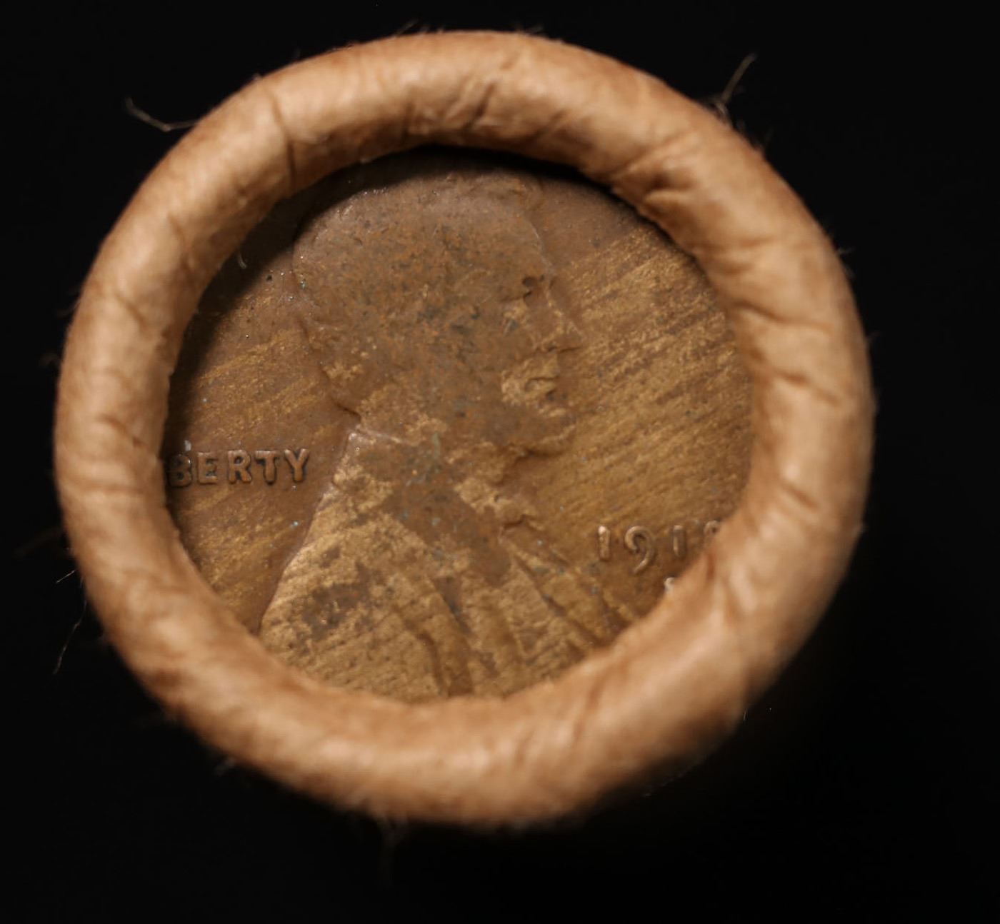 Mixed small cents 1c orig shotgun roll, 1918-s Wheat Cent, 1894 Indian Cent other end, Brinks Wrappe
