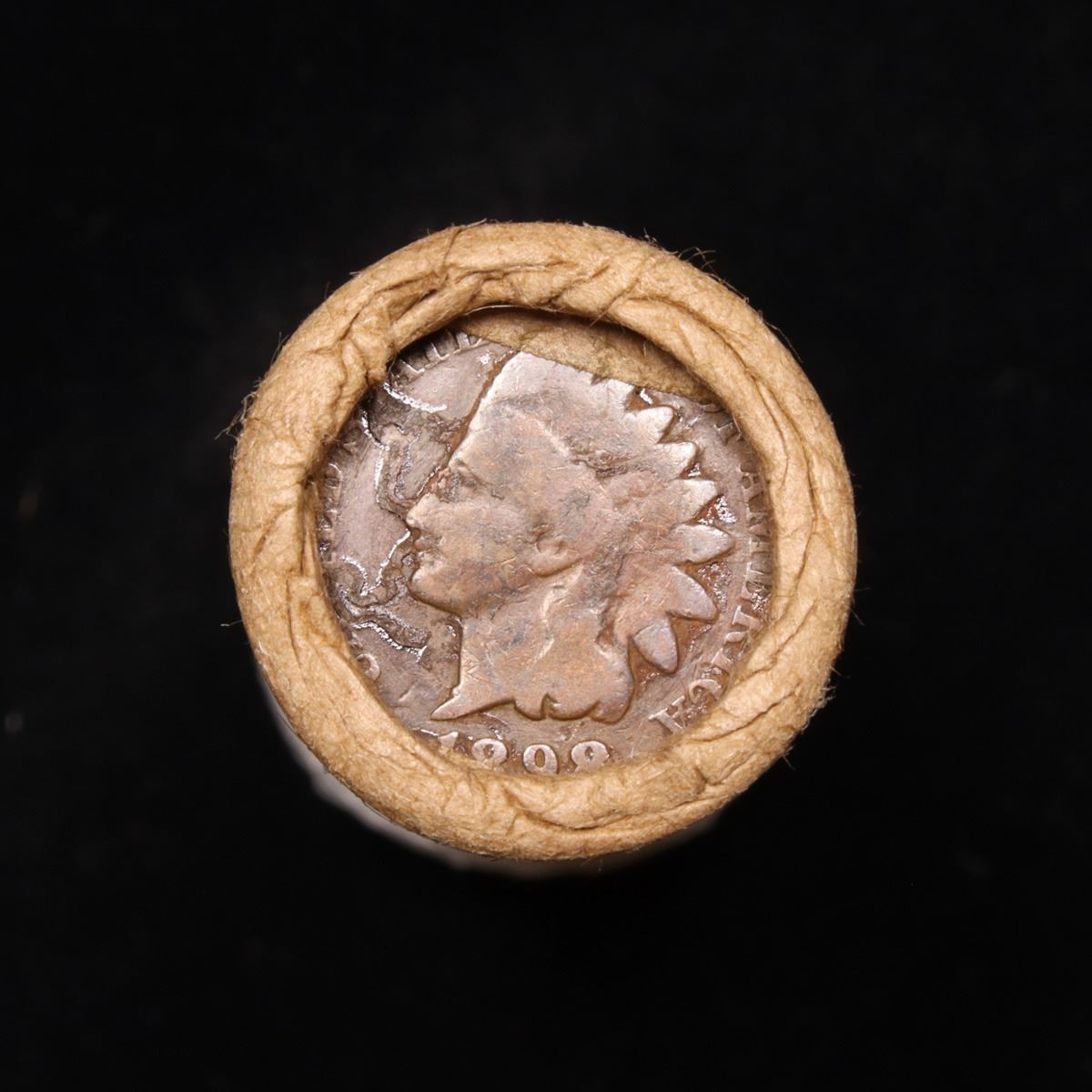 Mixed small cents 1c orig shotgun roll, 1918-s Wheat Cent, 1898 Indian Cent other end, McDonalds Wra