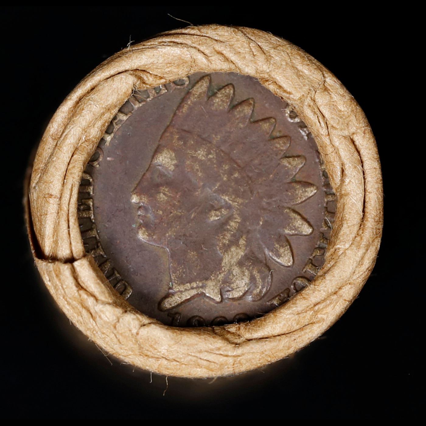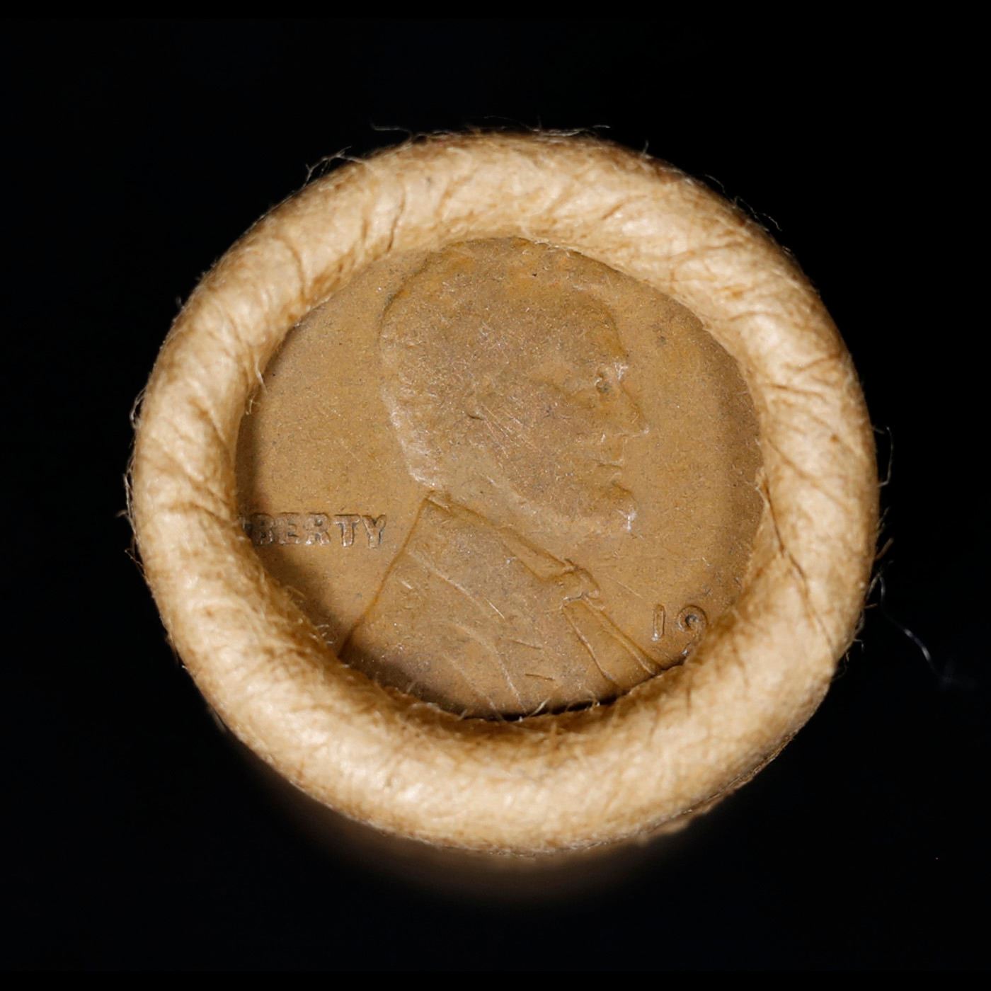 Mixed small cents 1c orig shotgun roll, 1919-d Wheat Cent, 1863 Indian Cent other end, Brinks Wrappe