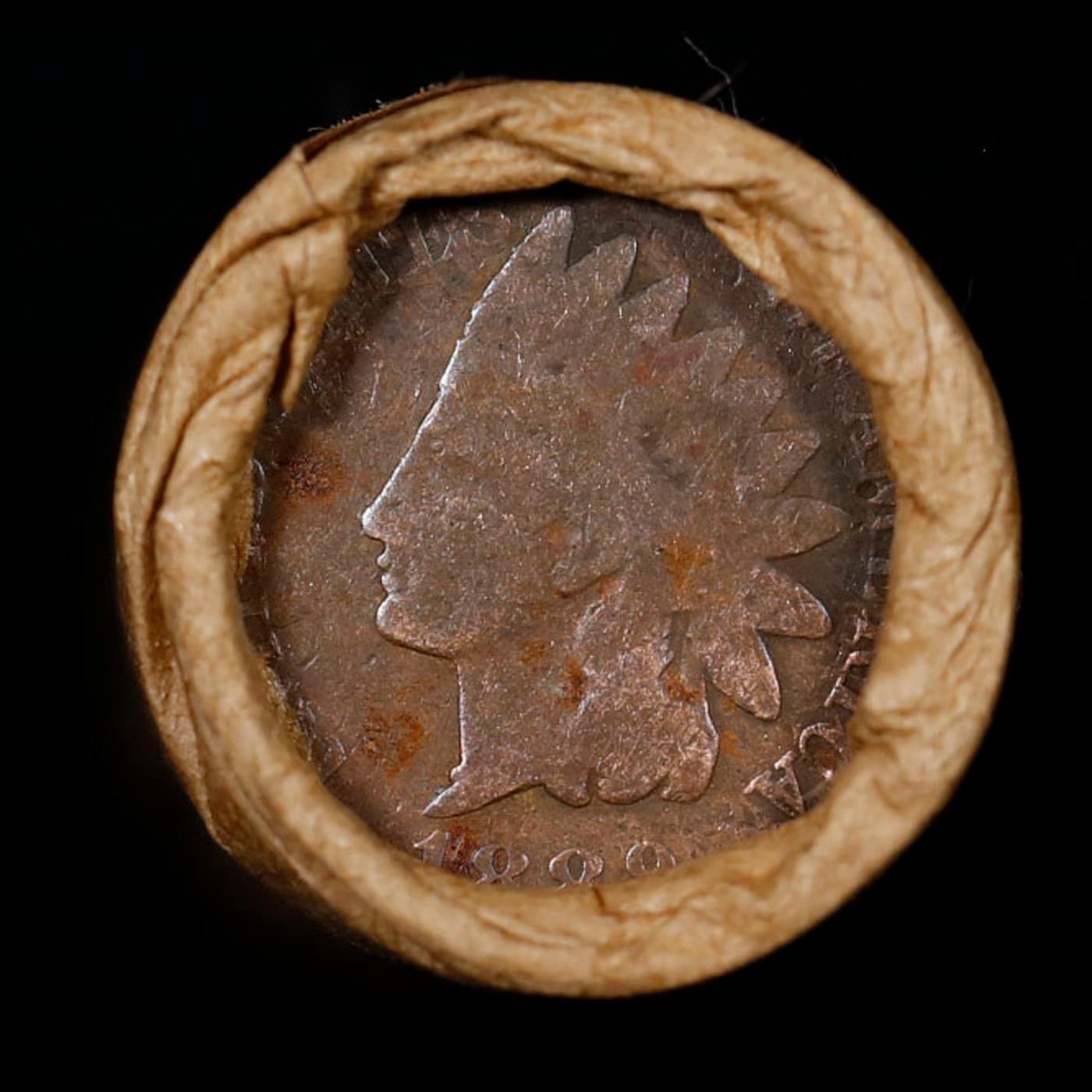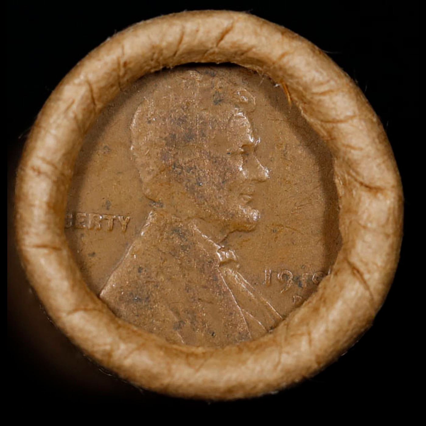 Mixed small cents 1c orig shotgun roll, 1919-d Wheat Cent, 1889 Indian Cent other end, Brinks Wrappe