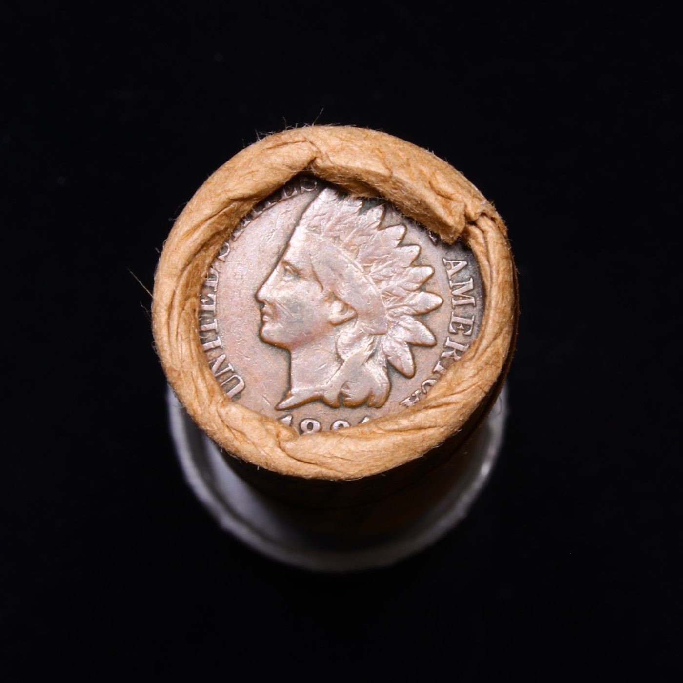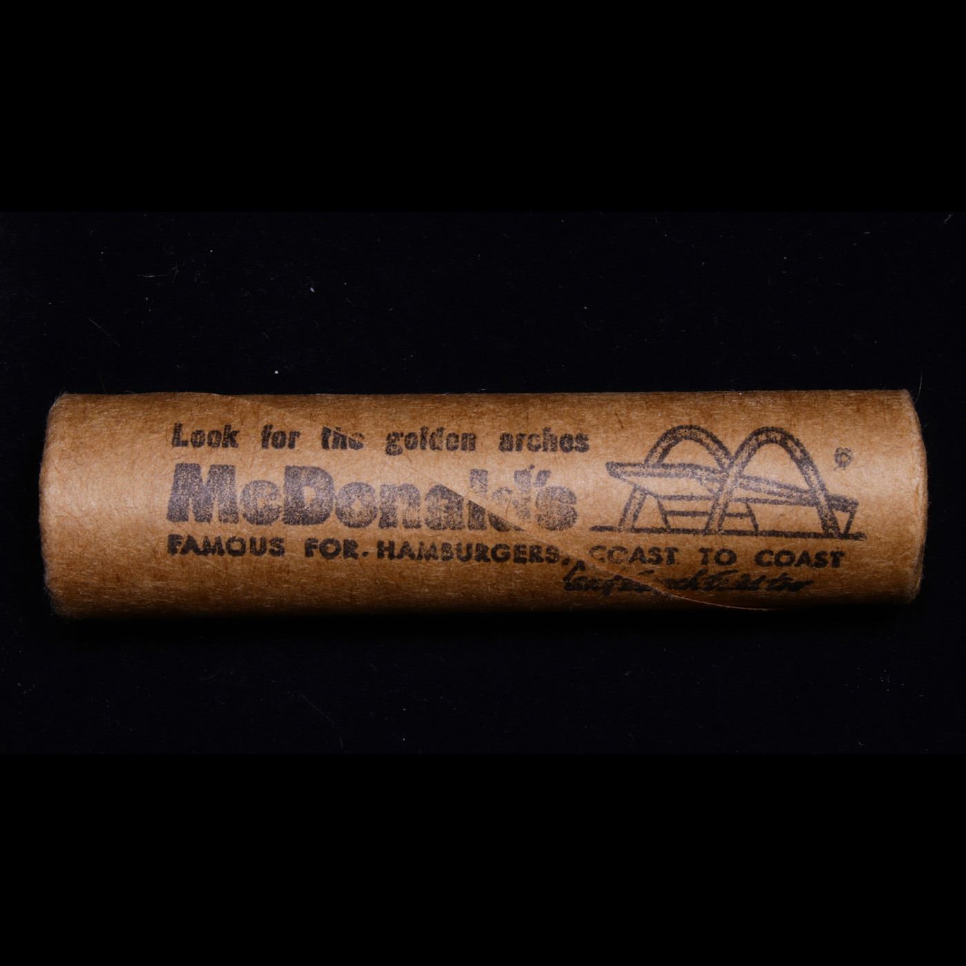 Mixed small cents 1c orig shotgun roll, 1919-d Wheat Cent, 1891 Indian cent other end, McDonalds Wrapper. The roll is held in an old Rare & Collectable McDonalds Wrapper. Look for the Golden Arches. Actual roll pictured is the roll you will get. A great original bank shotgun roll with very tight ends. We have opened a few of these rolls. They seem to be mixed small cents including Indians, Wheats, Steel cents & some Flying Eagles mixed in. These shotgun rolls are all from a new consignee. They are all frrom one Estate.