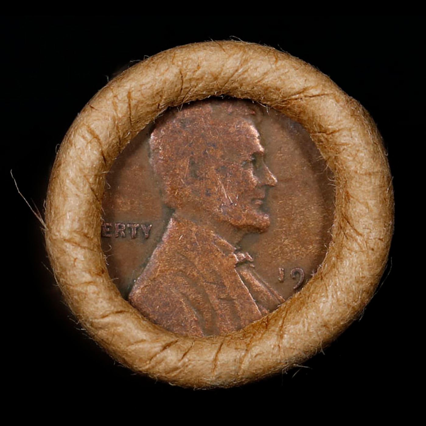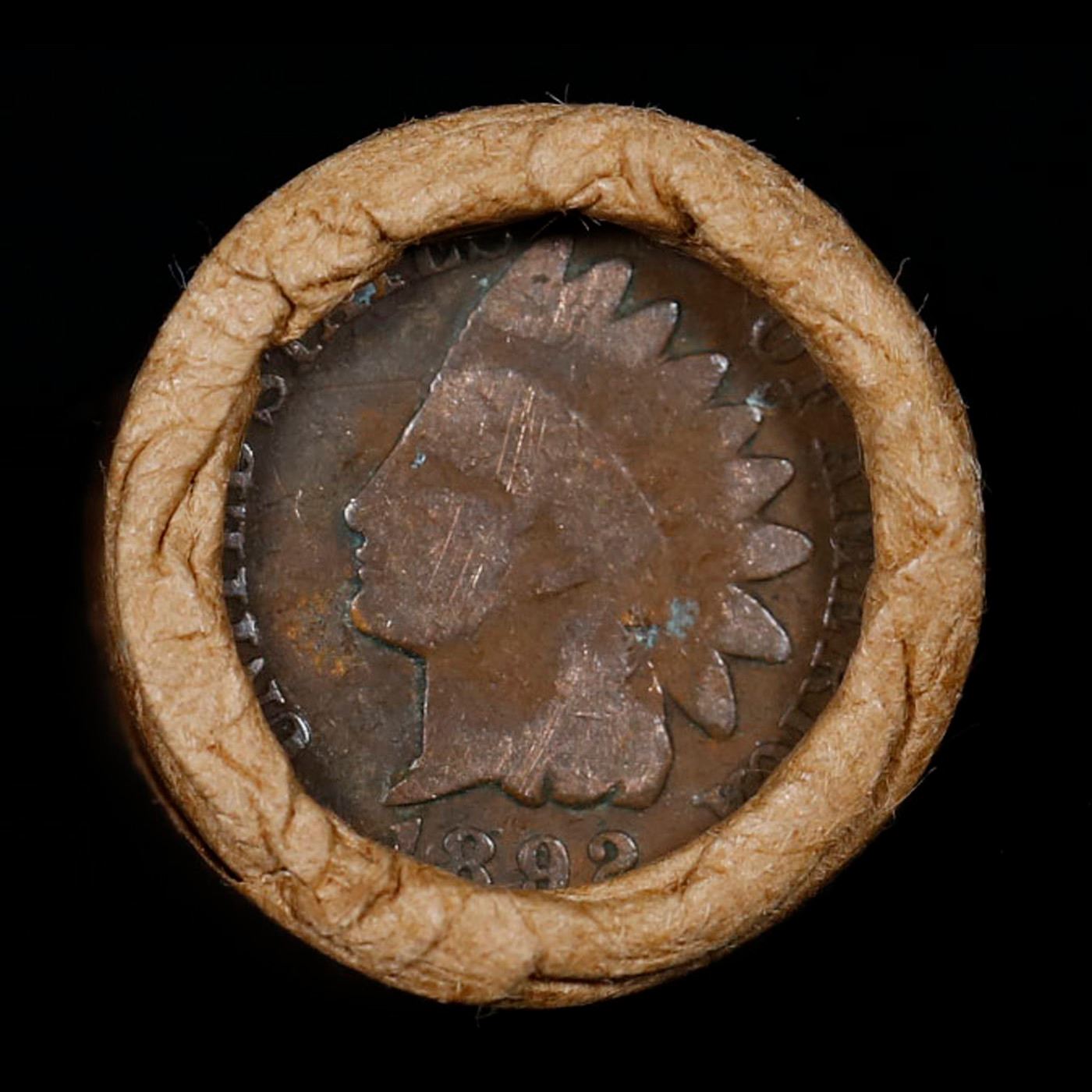 Mixed small cents 1c orig shotgun roll, 1919-d Wheat Cent, 1892 Indian Cent other end, Brinks Wrappe