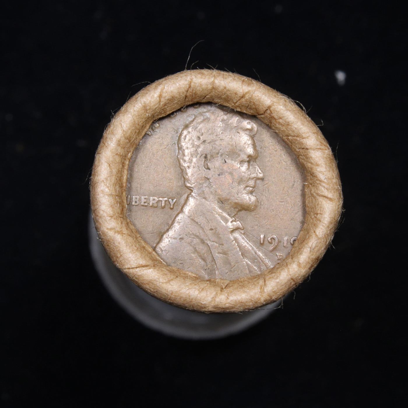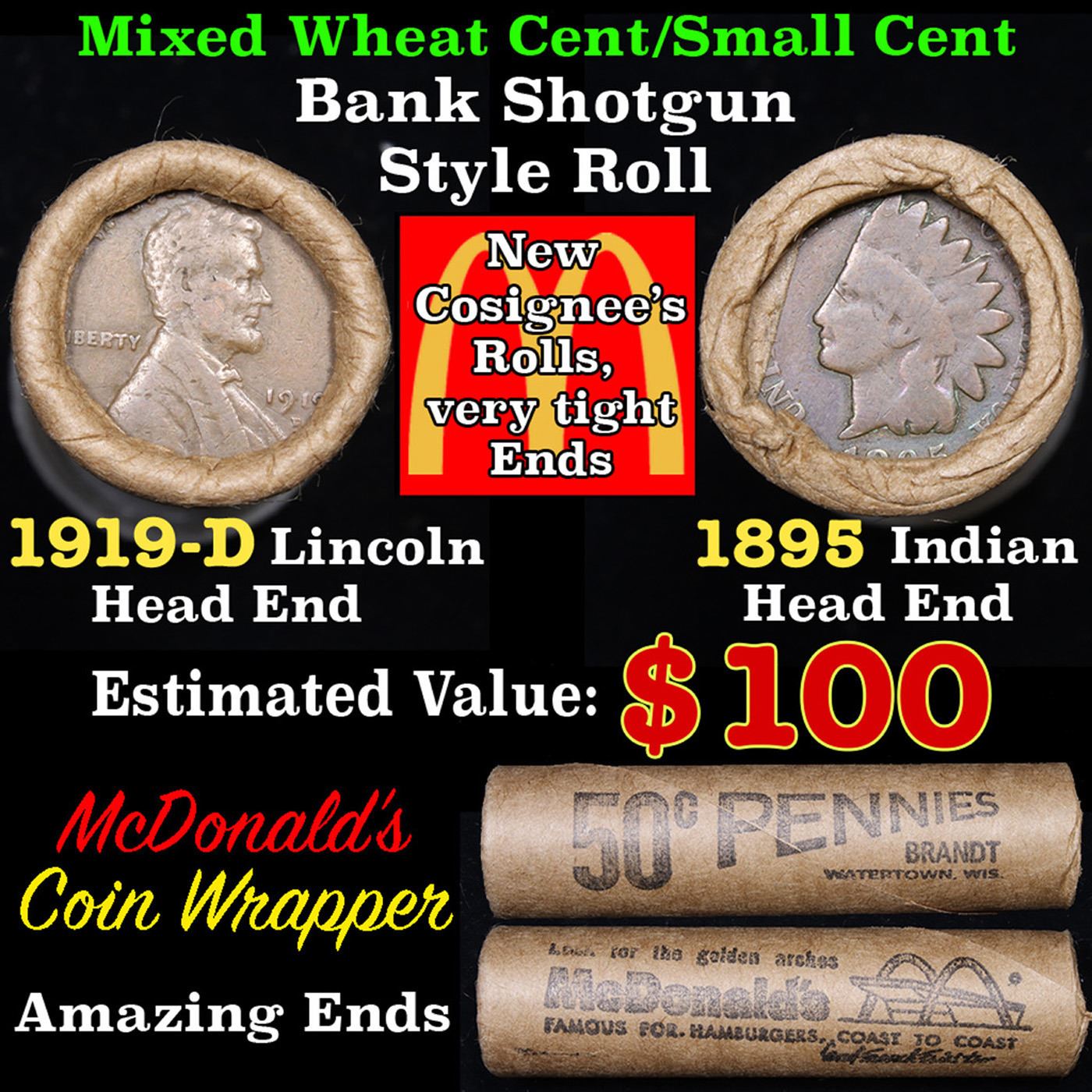 Mixed small cents 1c orig shotgun roll, 1919-d Wheat Cent, 1895 Indian Cent other end, McDonalds Wra