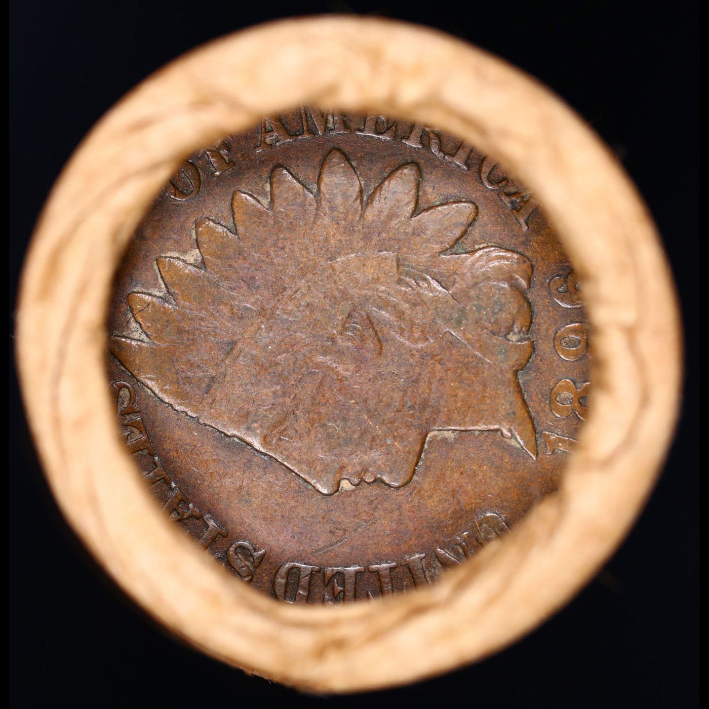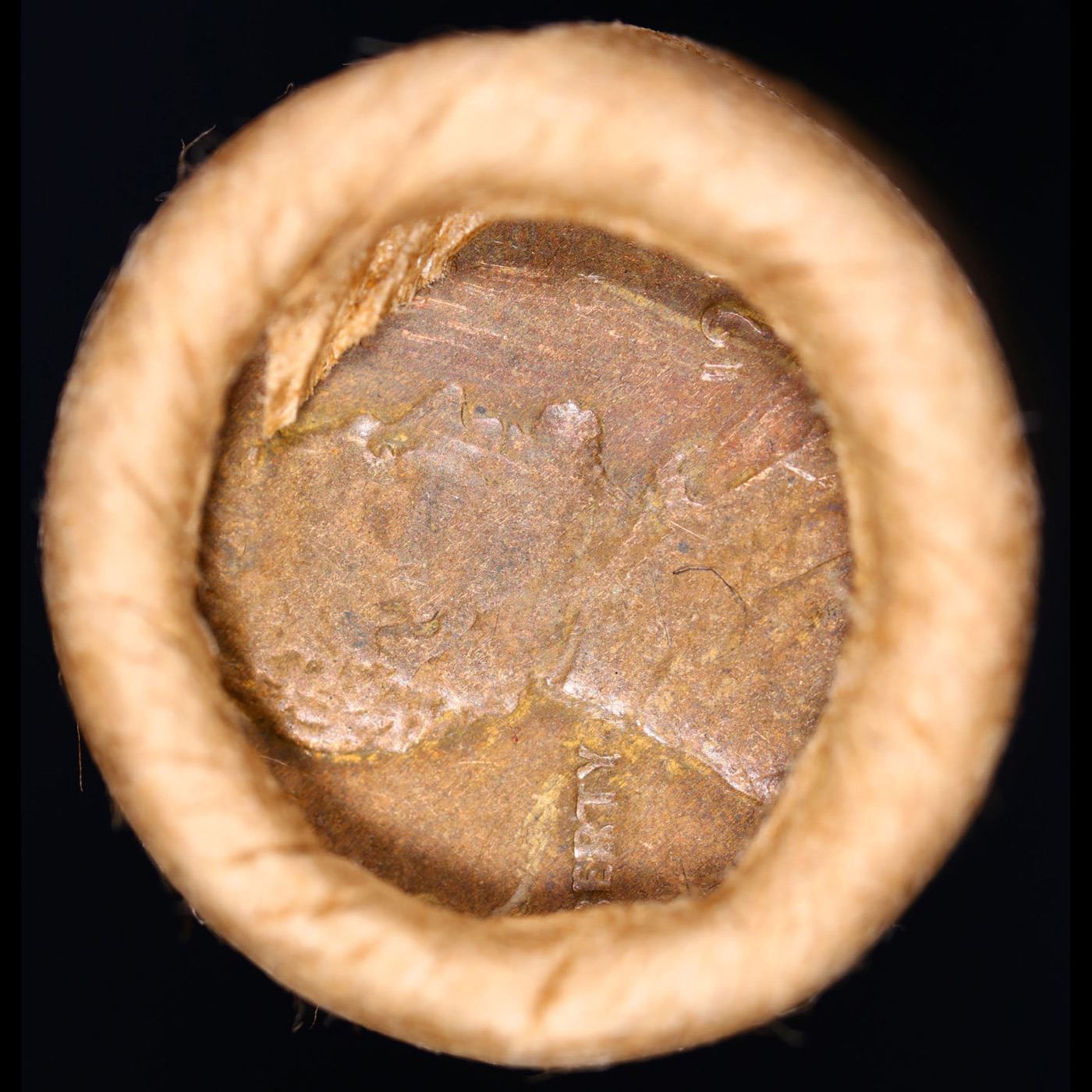 Mixed small cents 1c orig shotgun roll, 1919-d Wheat Cent, 1896 Indian Cent other end, brinks Wrappe