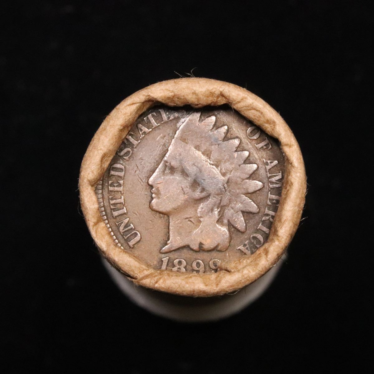 Mixed small cents 1c orig shotgun roll, 1919-d Wheat Cent, 1899 Indian Cent other end