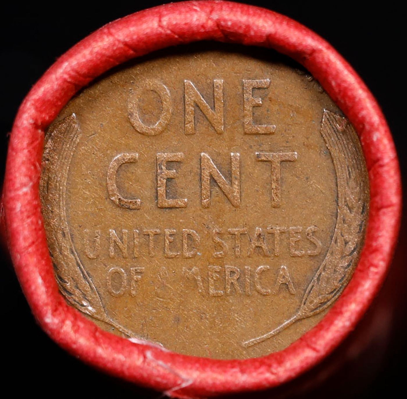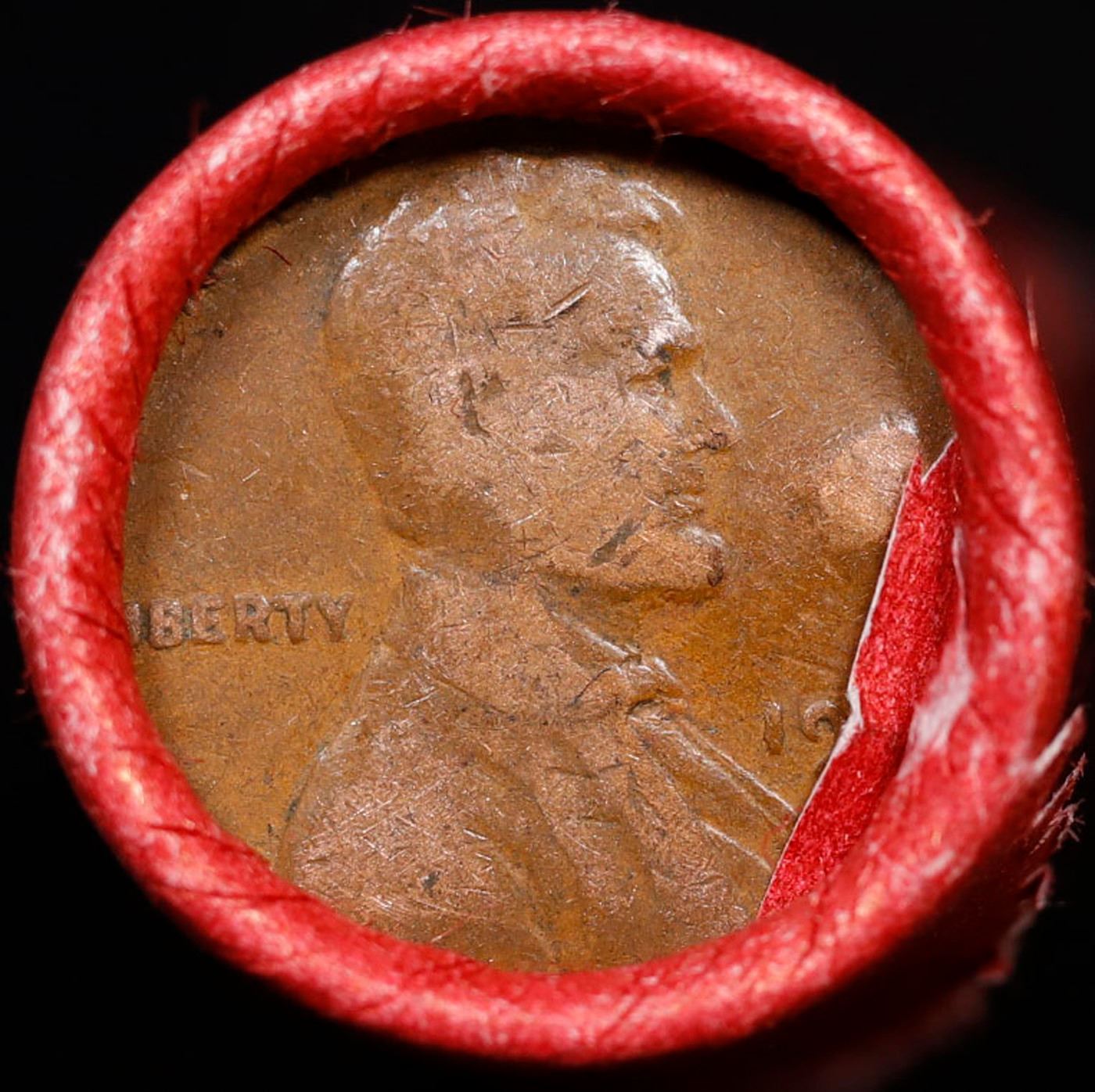 Mixed small cents 1c orig shotgun roll, 1919-p Lincoln Cent, Wheat Cent other end, Coca Cola Wrapper