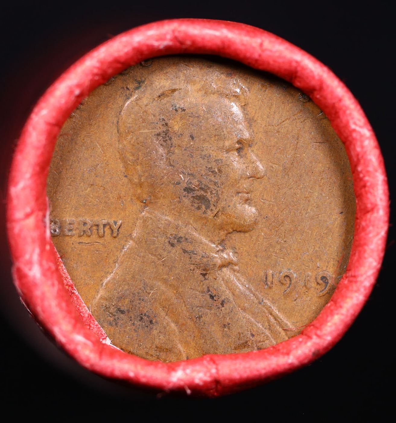 Mixed small cents 1c orig shotgun roll, 1919-p Lincoln Cent, Wheat Cent other end, Coca Cola Wrapper. Actual roll pictured is the roll you will get. A Brandt wrapper stamped Coca-Cola. A great original bank shotgun roll with very tight ends. We have opened a few of these rolls. They seem to be mixed small cents including Indians, Wheats, Steel cents & some Flying Eagles mixed in. These shotgun rolls are all from a new consignee. They are all frrom one Estate.
