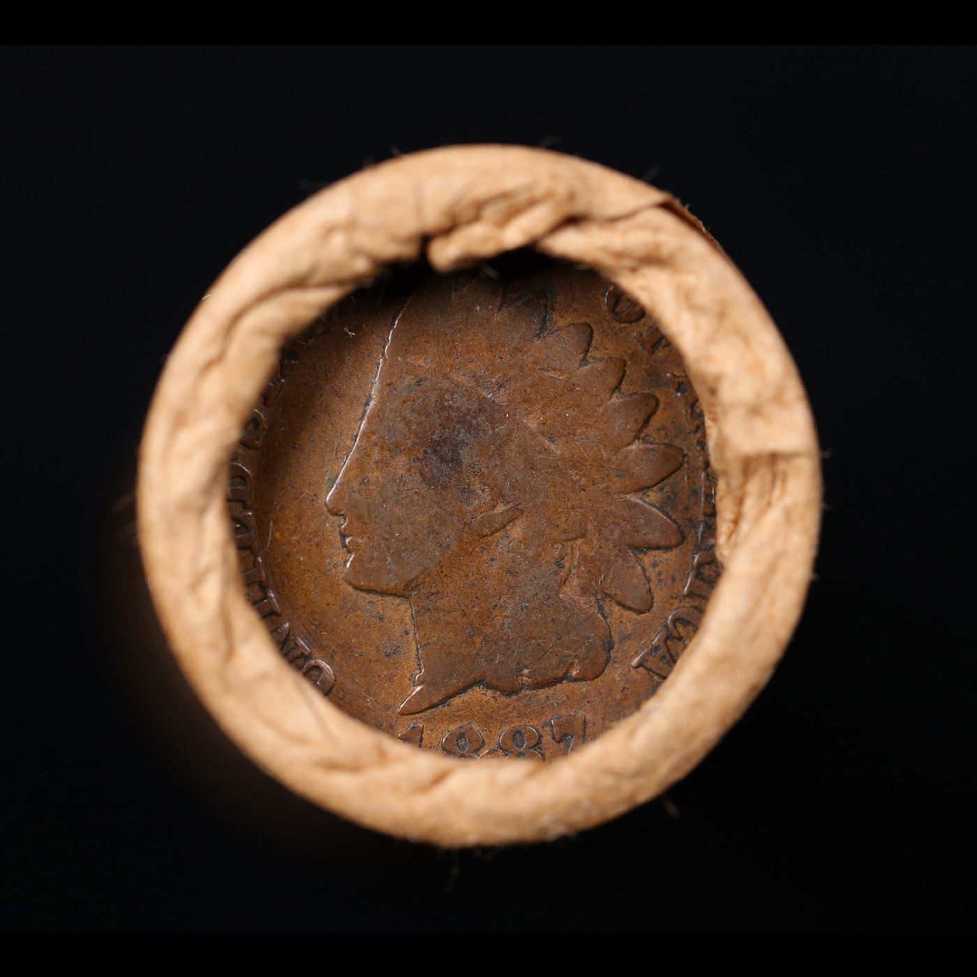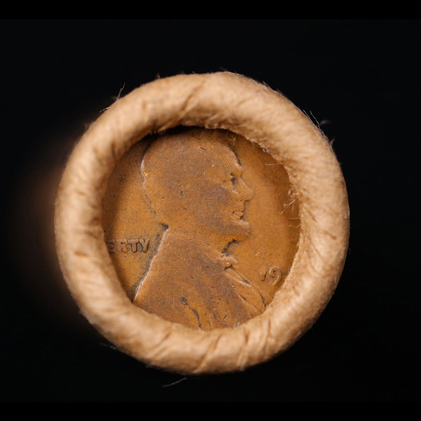 Mixed small cents 1c orig shotgun roll, 1919-s Wheat Cent, 1864 Indian Cent other end, Brinks Wrappe