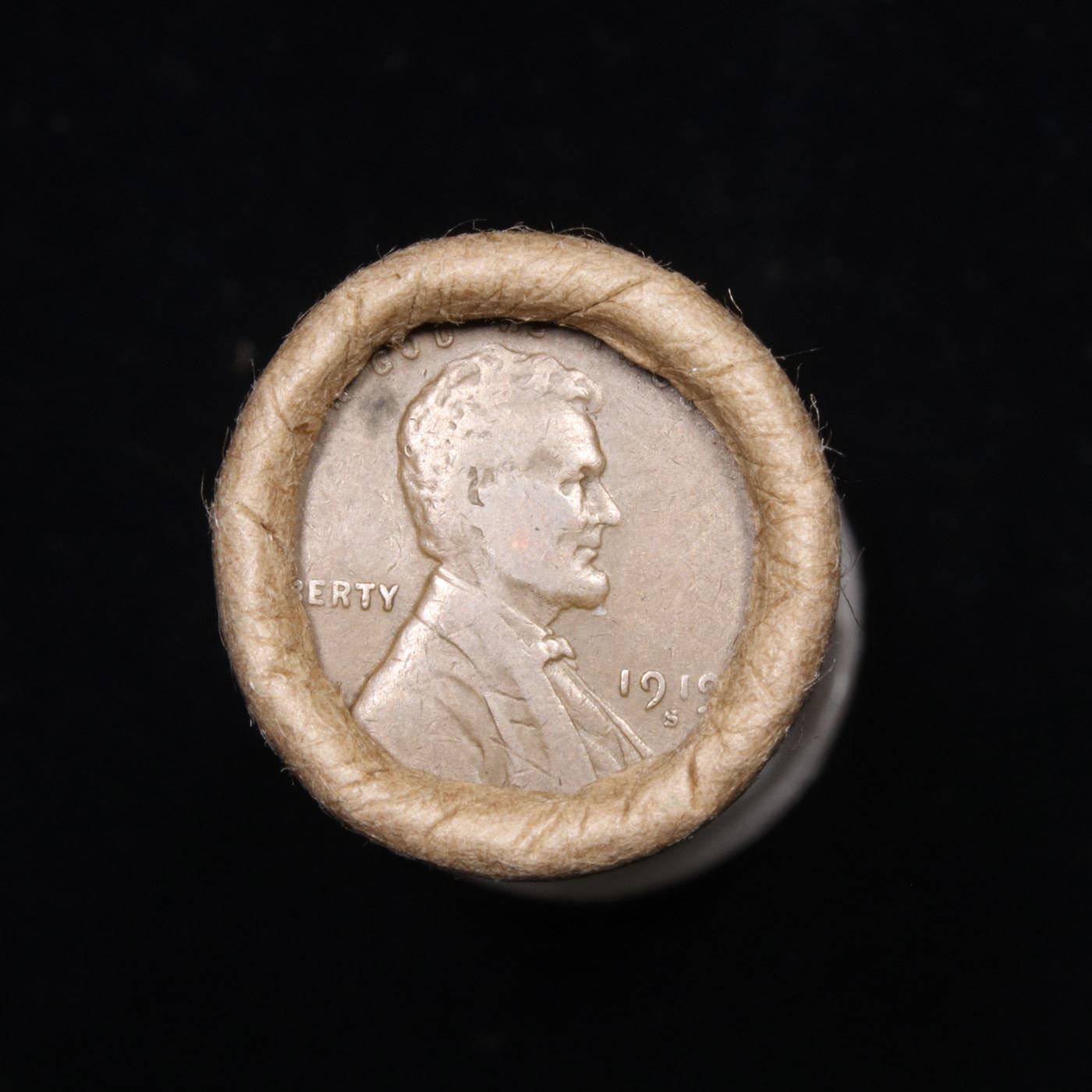 Mixed small cents 1c orig shotgun roll, 1919-s Wheat Cent, 1882 Indian Cent other end, McDonalds Wra