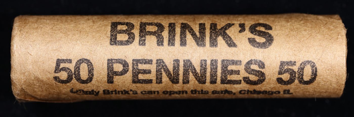Mixed small cents 1c orig shotgun roll, 1919-s Wheat Cent, 1883 Indian Cent other end, brinks Wrapper. The roll is held in an old Rare & Collectable Brinks 'Only Brinks Can Open This Safe, Chicago IL' Penny wrapper. Actual roll pictured is the roll you will get. A great original bank shotgun roll with very tight ends. We have opened a few of these rolls. They seem to be mixed small cents including Indians, Wheats, Steel cents & some Flying Eagles mixed in. These shotgun rolls are all from a new consignee. They are all frrom one Estate.