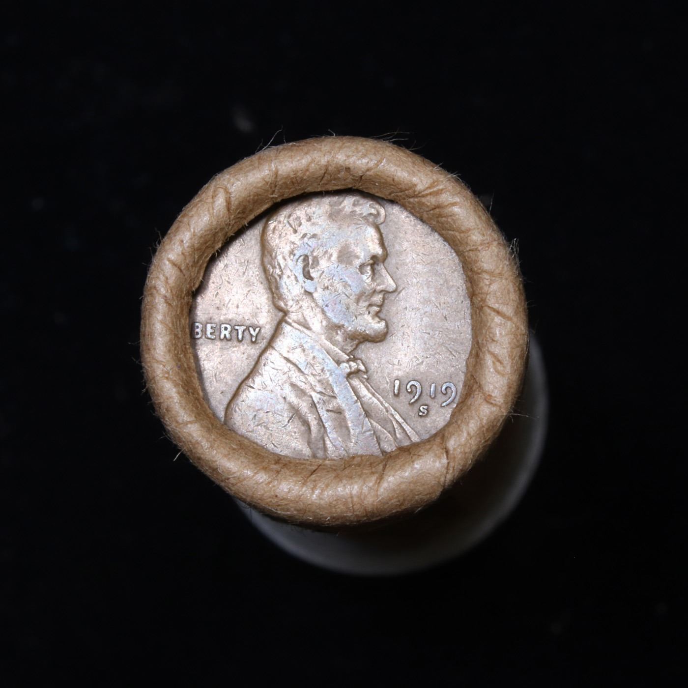 Mixed small cents 1c orig shotgun roll, 1919-s Wheat Cent, 1891 Indian Cent other end, McDonalds Wra