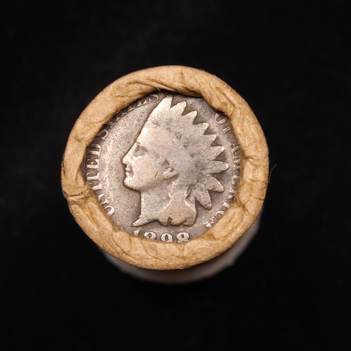 Mixed small cents 1c orig shotgun roll, 1919-s Wheat Cent, 1898 Indian Cent other end,McDnalds Wrapp