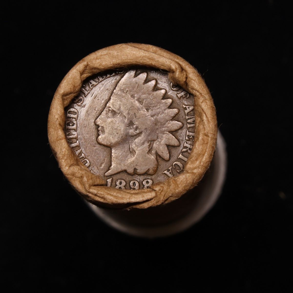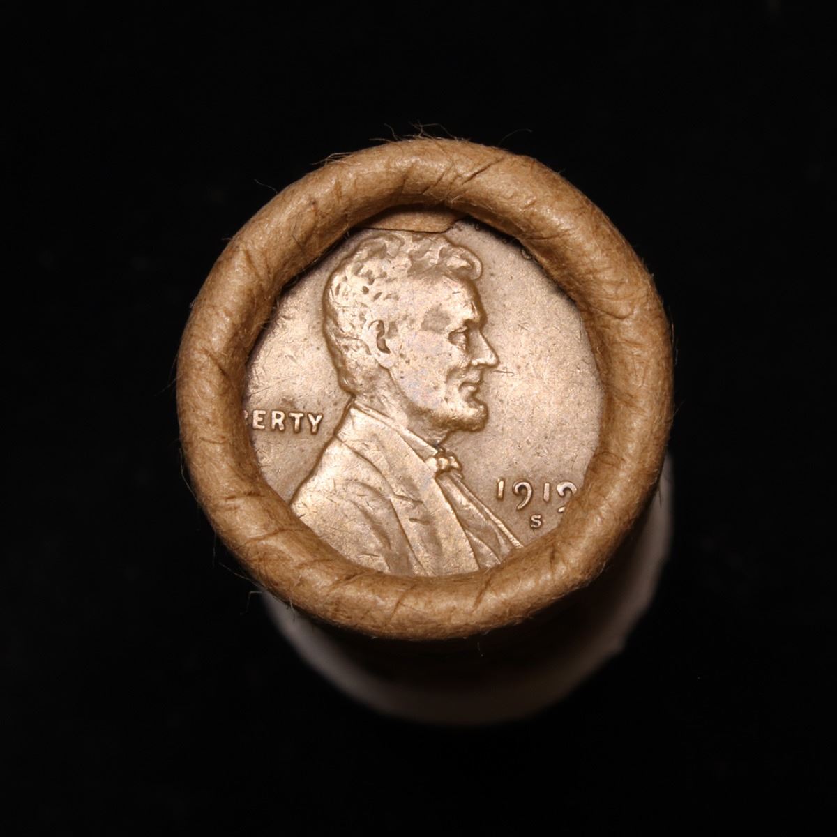 Mixed small cents 1c orig shotgun roll, 1919-s Wheat Cent, 1898 Indian Cent other end, McDonalds Wra