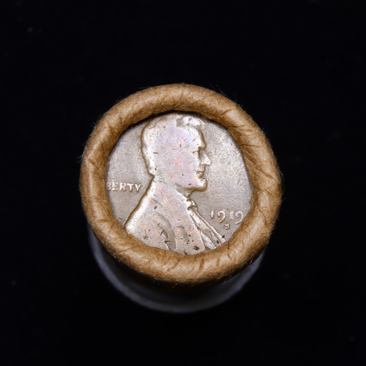 Mixed small cents 1c orig shotgun roll, 1919-s Wheat Cent, 1899 Indian Cent other end, McDonalds Wra
