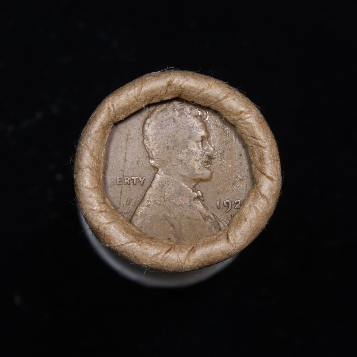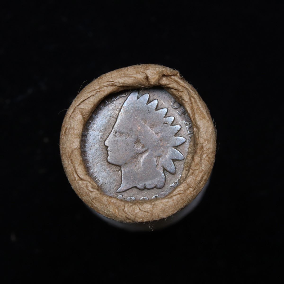 Mixed small cents 1c orig shotgun roll, 1920-d Wheat Cent, 1889 Indian Cent other end, McDonalds Wra