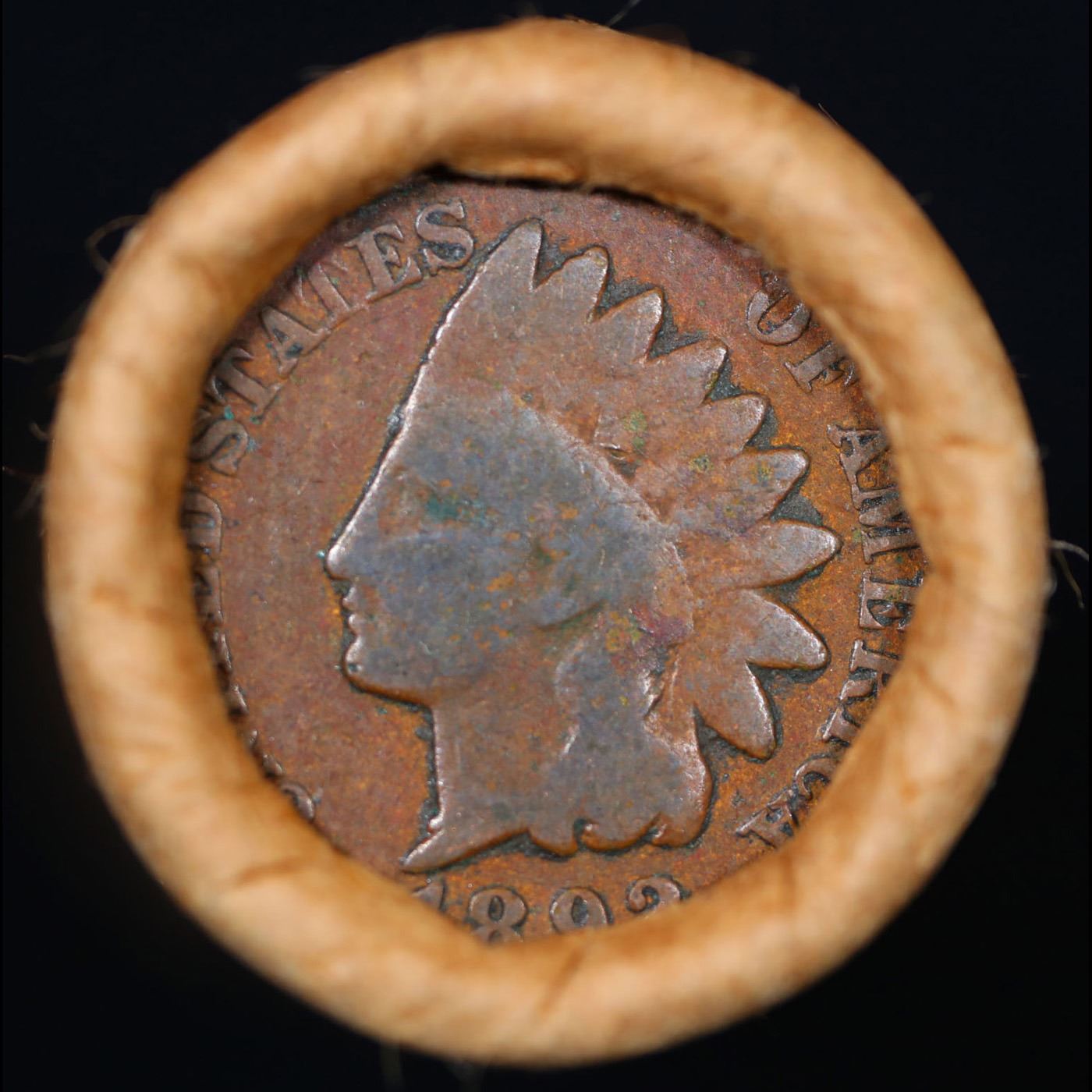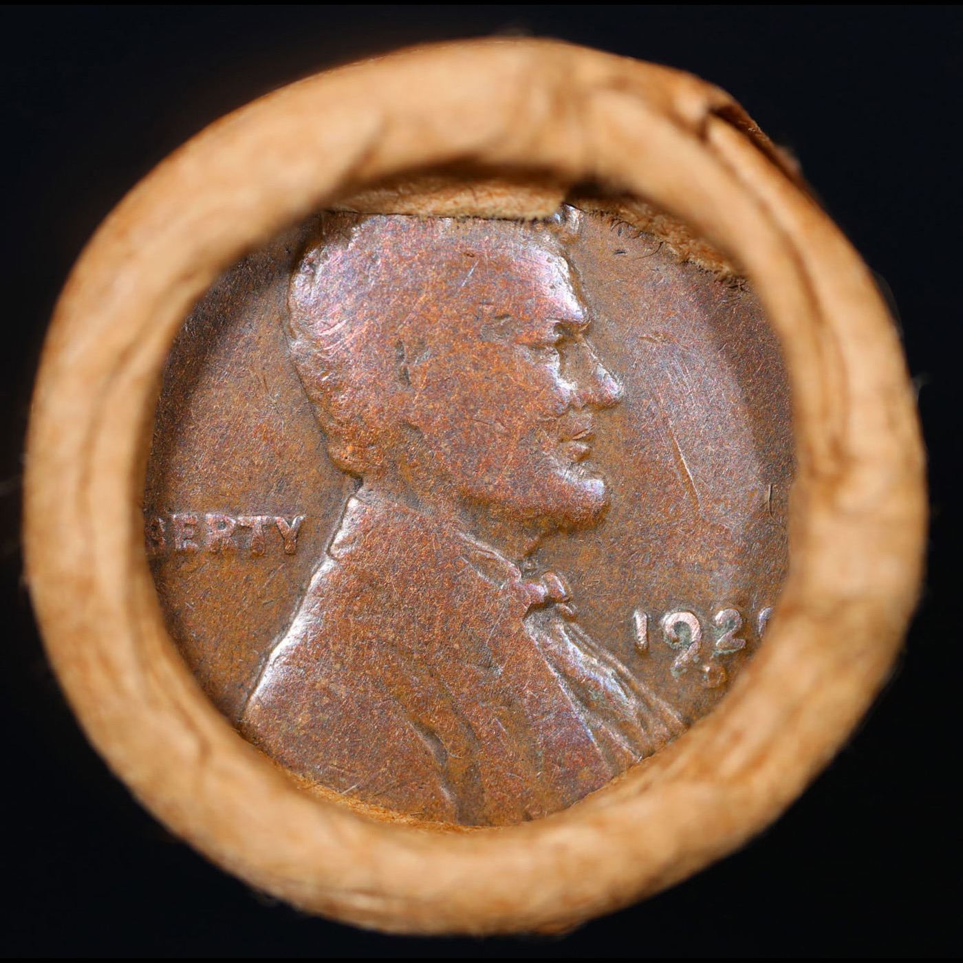 Mixed small cents 1c orig shotgun roll, 1920-d Wheat Cent, 1892 Indian Cent other end, McDonalds Wra