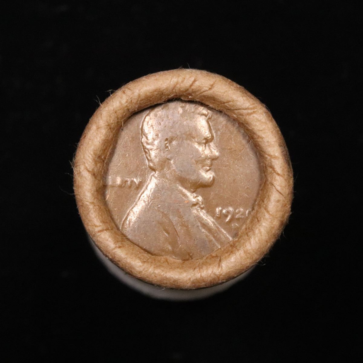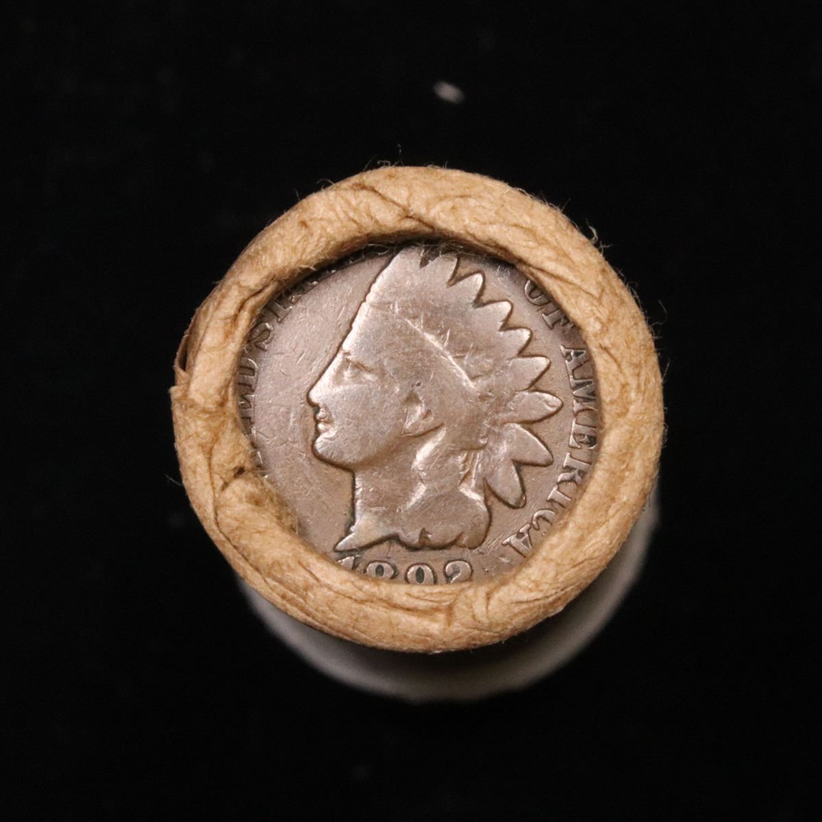 Mixed small cents 1c orig shotgun roll, 1920-d Wheat Cent, 1892 Indian Cent other end