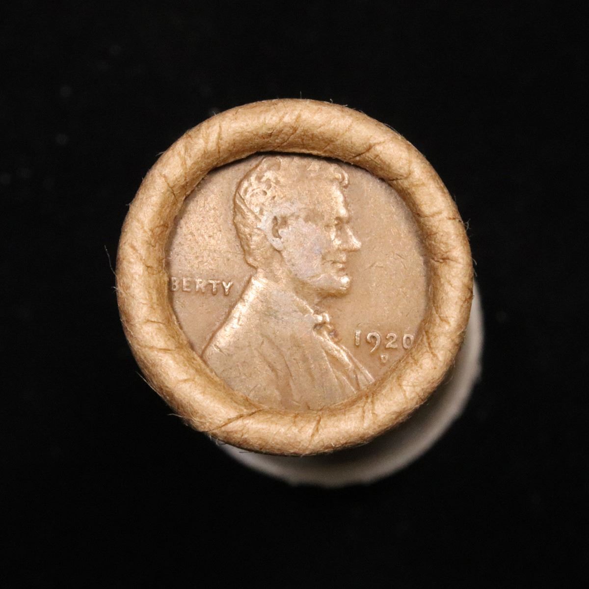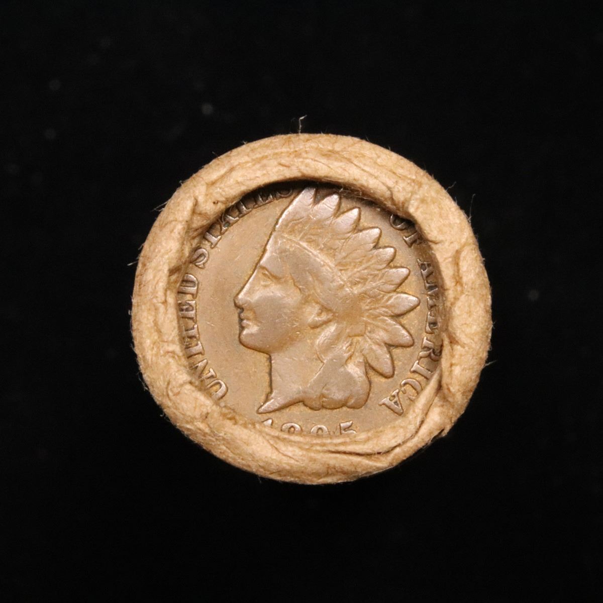 Mixed small cents 1c orig shotgun roll, 1920-d Wheat Cent, 1895 Indian Cent other end