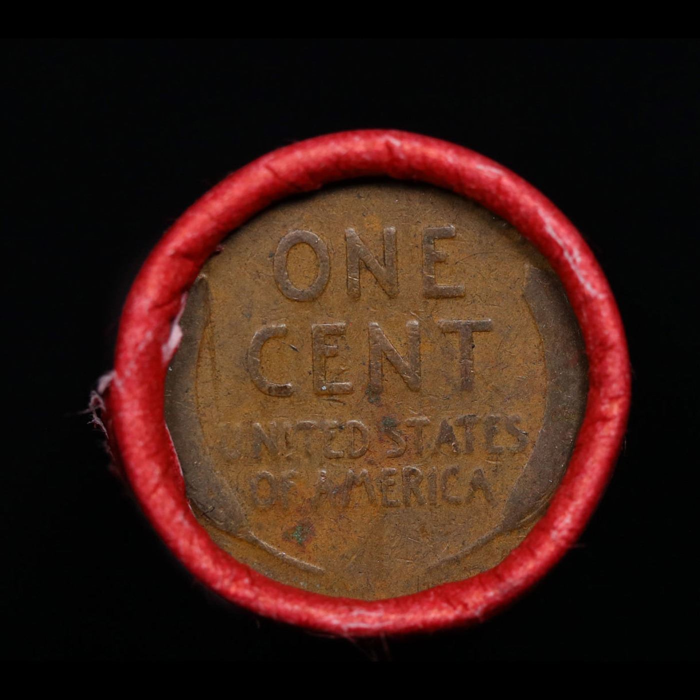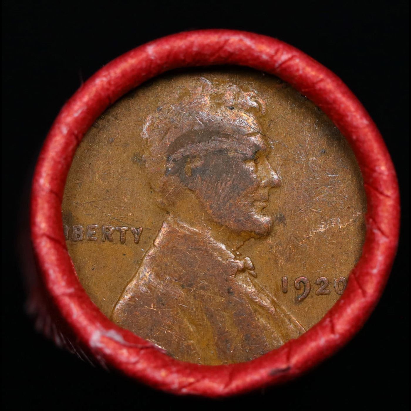 Mixed small cents 1c orig shotgun roll, 1920-p Lincoln Cent, Wheat Cent other end, Nathan's Brandt W