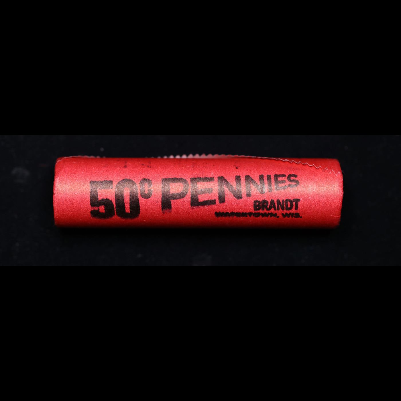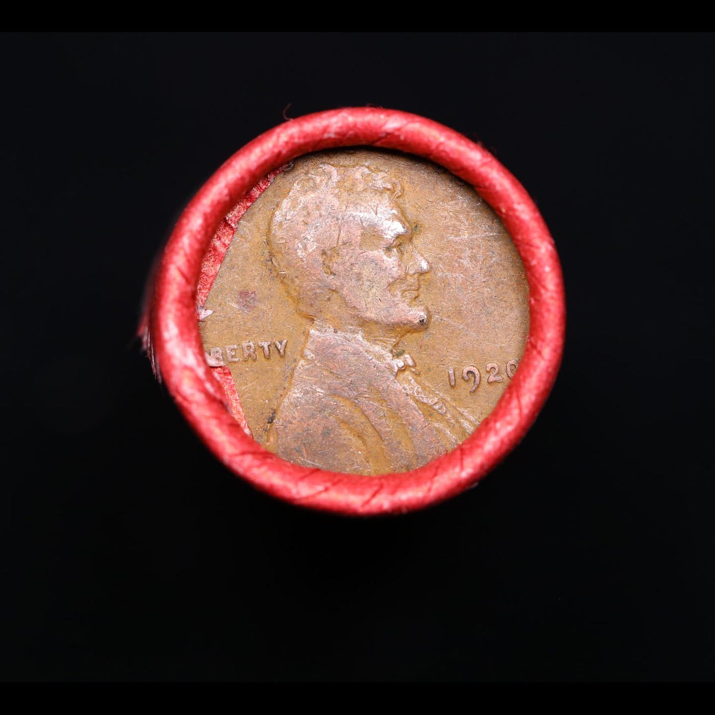 Mixed small cents 1c orig shotgun roll, 1920-p Lincoln Cent, Wheat Cent other end, Nathan's Brandt W