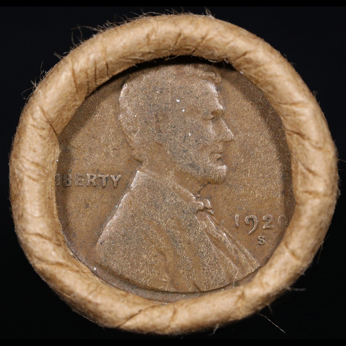 Mixed small cents 1c orig shotgun roll, 1920-s Wheat Cent, 1899 Indian Cent other end, McDonalds Wra