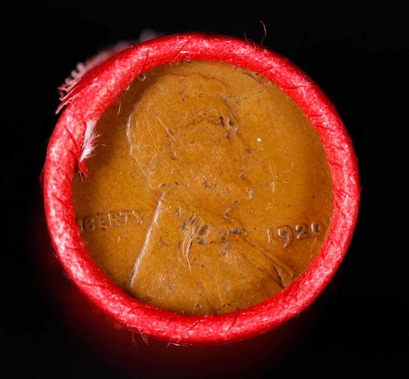 Mixed small cents 1c orig shotgun roll, 1926-p Lincoln Cent, 1920-p Lincoln Cent other end, Coca Col
