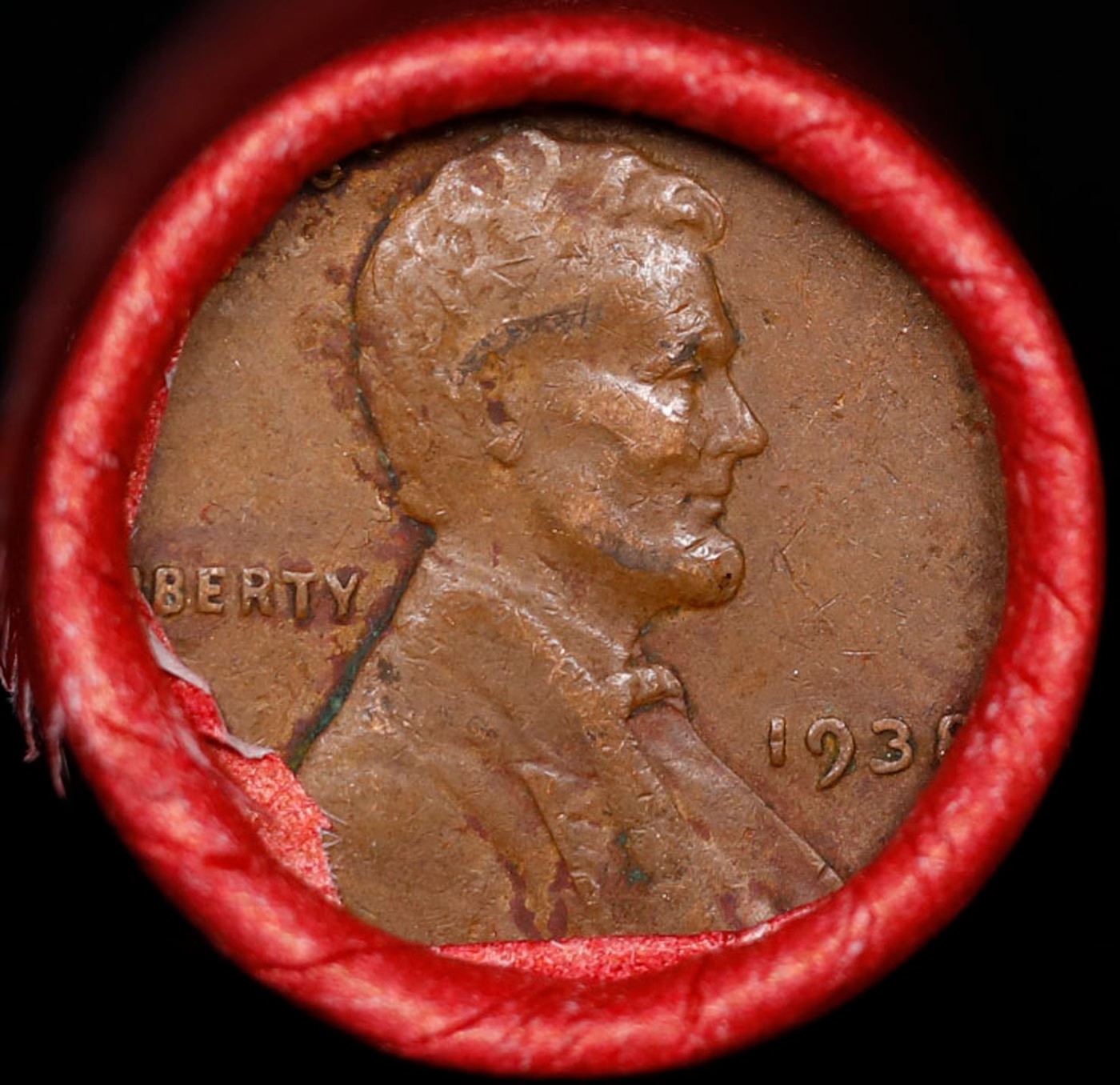 Mixed small cents 1c orig shotgun roll, 1929-p Lincoln Cent, 1938-p Lincoln Cent other end, Coca-Col