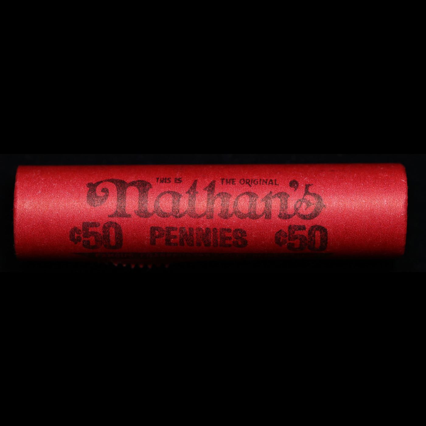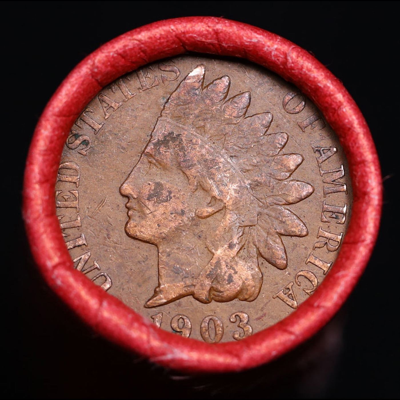 Mixed small cents 1c orig shotgun roll, Wheat Cent, 1903 Indian Cent other end, Nathan's Brandt Wrap