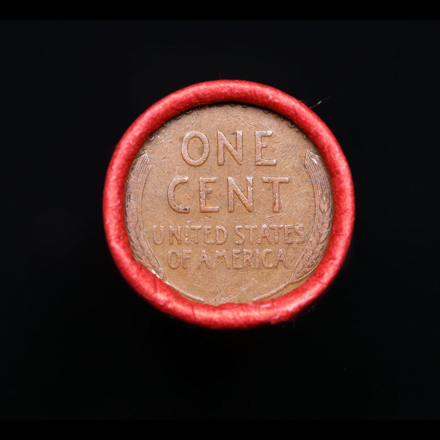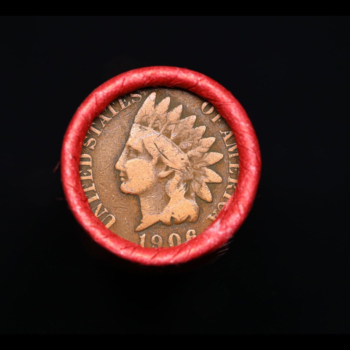 Mixed small cents 1c orig shotgun roll, Wheat Cent, 1906 Indian Cent other end, Nathan's Brandt Wrap