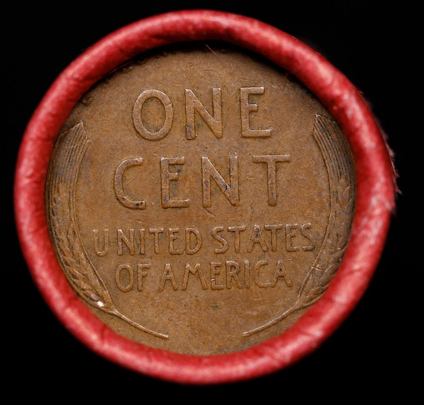 Mixed small cents 1c orig shotgun roll, Wheat Cent, 1943-p Cent other end, Coca Cola Brandt Wrapper