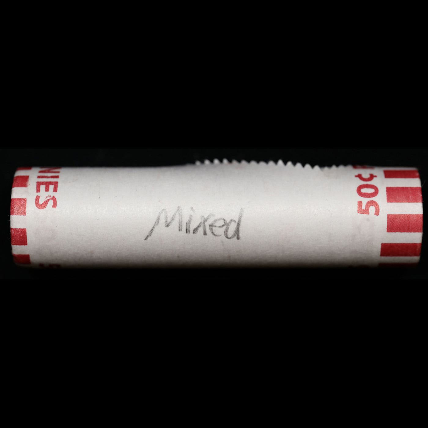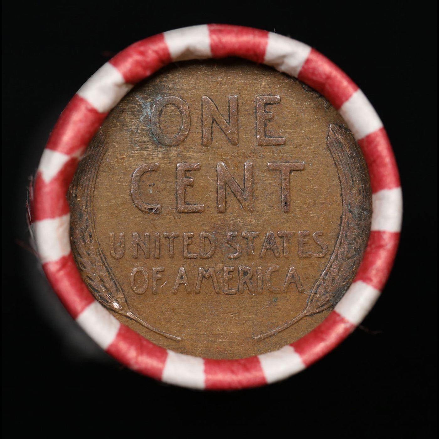 Mixed small cents 1c orig shotgun roll, Wheat Cent End, Indian Cent Other End Bank Wrapper.