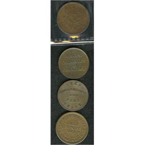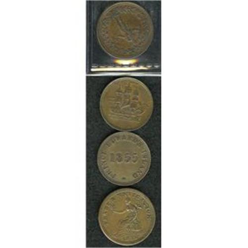 <B>Mixed Token Selection featuring:</B></I> Prince Edward Island Halfpenny 1855, BR-918, CH-PE7A1, XF; Nova Scotia Halfpenny 1812, BR-963, CH-NS19A, VF-XF; Prince Edward Island Halfpenny ca. 1835, BR-997, CH-PE10-38, XF; and an anonymous Pure Copper Preferable To Paper Halfpenny ND, BR-1009, CH-AM4, XF40 ICCS.<BR><BR><b>Shipping:</b> Coin/Currency (<a target="_blank" href="http://www.heritageauctions.com/common/shipping.php">view shipping information</a>)