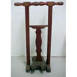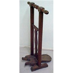 Mixed woods bootjack, baluster turned handle, 31 3/4" high, 19th C. Estimate 120/250
