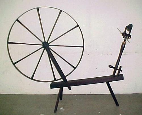 Mixed woods spinning wheel; 19th C. measures approximately 5' high x 6' across (no visible defects) WILL NOT SHIP.