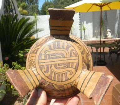 Mixtec Pre-Columbian Bowl which measures approximately 7x3.5 inches. This came from Central Mexico extremely fine paint. This item was from a long time San Diego Collection. Item has been broken and professionally restored